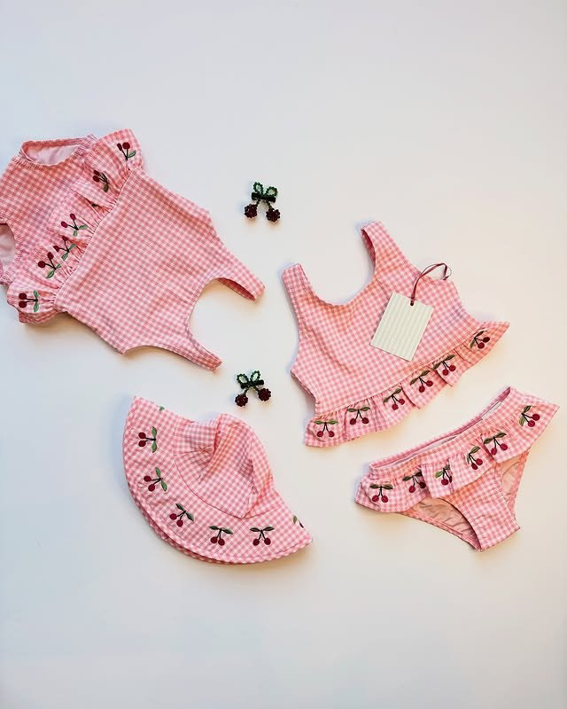 소녀 슬링 수영복 2025 여름 새로운 귀여운 핑크 격자 무늬 조각 북유럽 어린이 수영복 빠른 건조스토어 가기