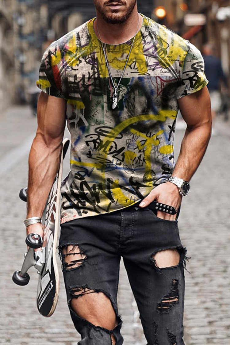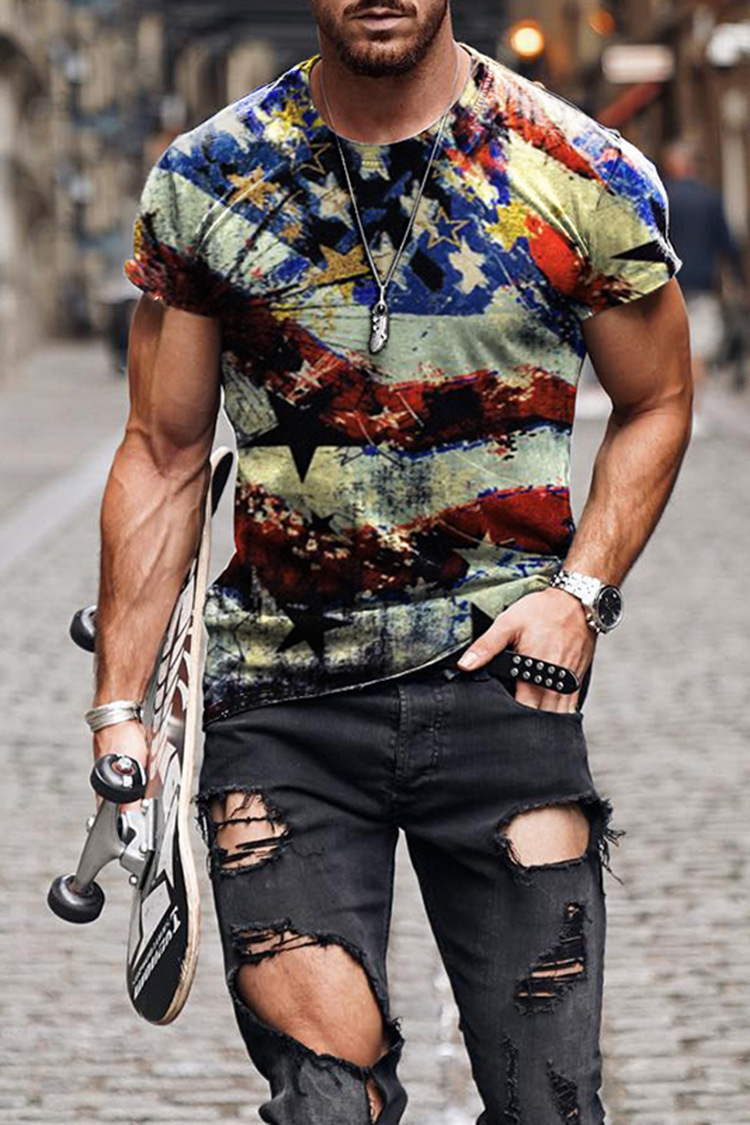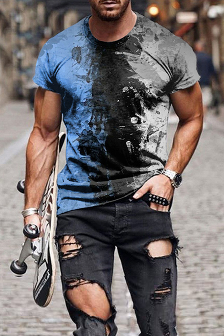 국경 간 전자 상거래 반팔 남성 3D 티셔츠 캐주얼 3D 디지털 인쇄 칼라리스 캐주얼 커플 의류 통기성 할인스토어 가기