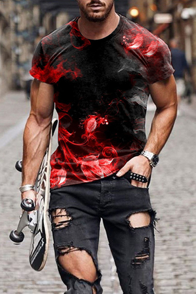 국경 간 전자 상거래 반팔 남성 3D 티셔츠 캐주얼 3D 디지털 인쇄 칼라리스 캐주얼 커플 의류 통기성 할인