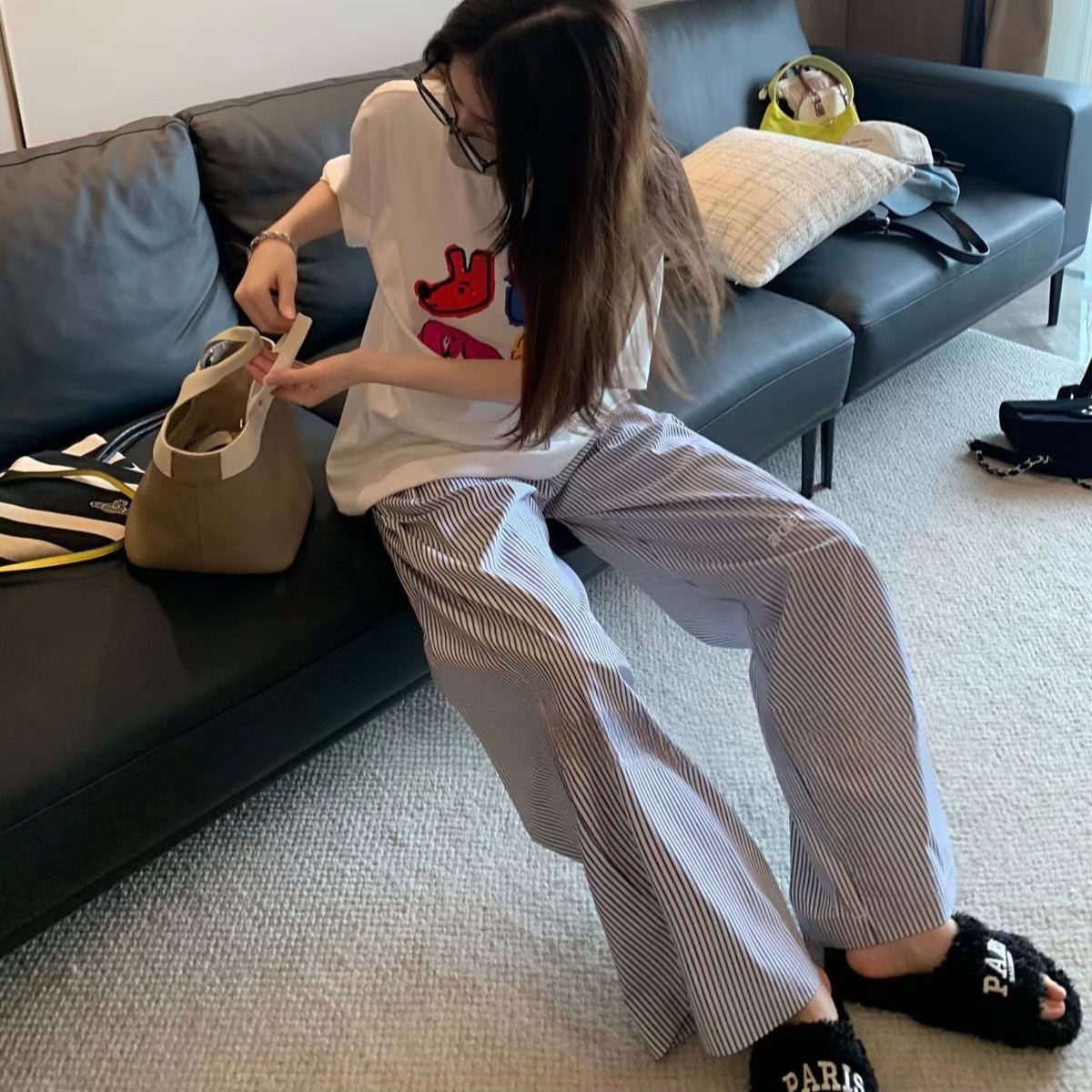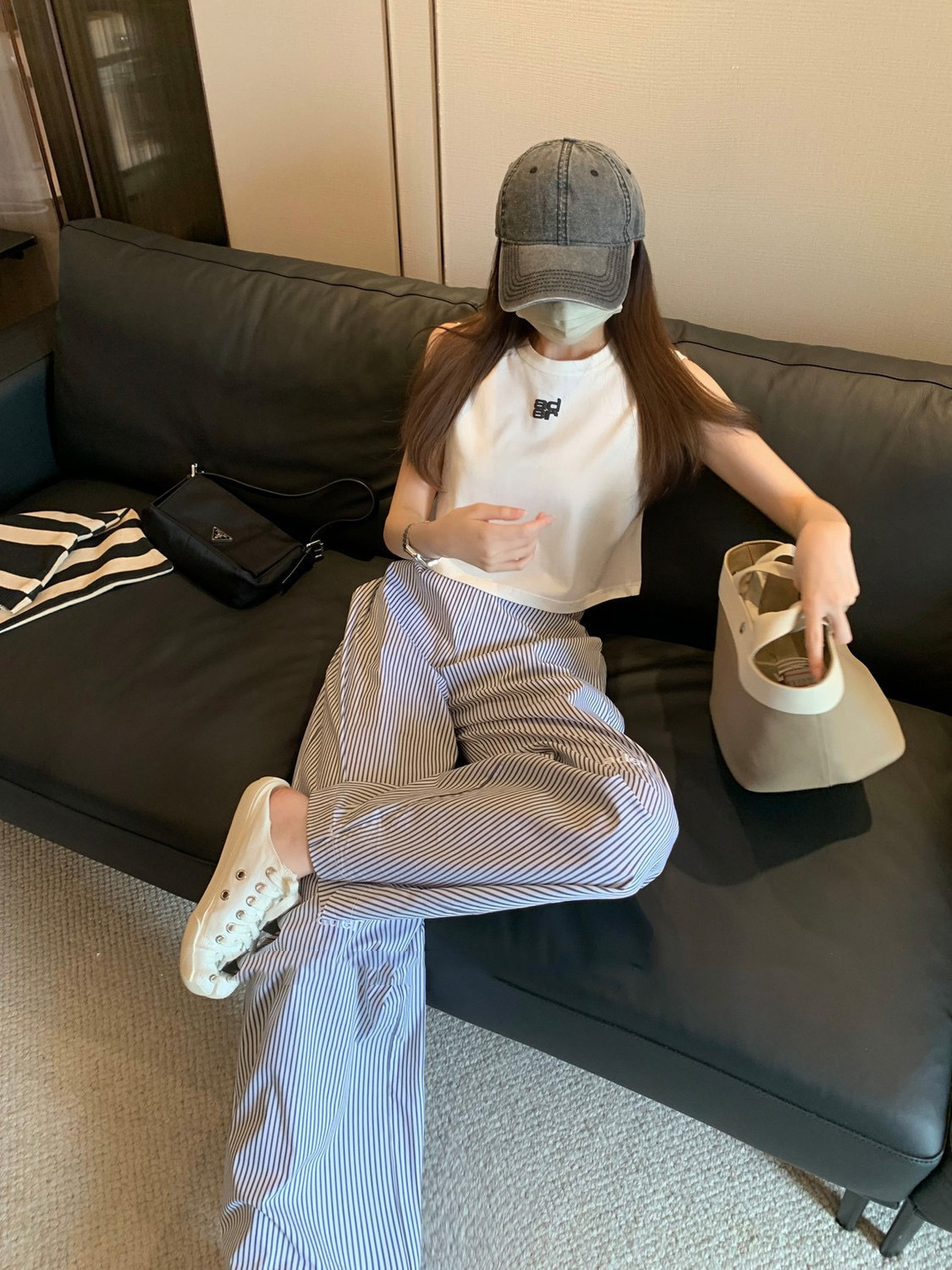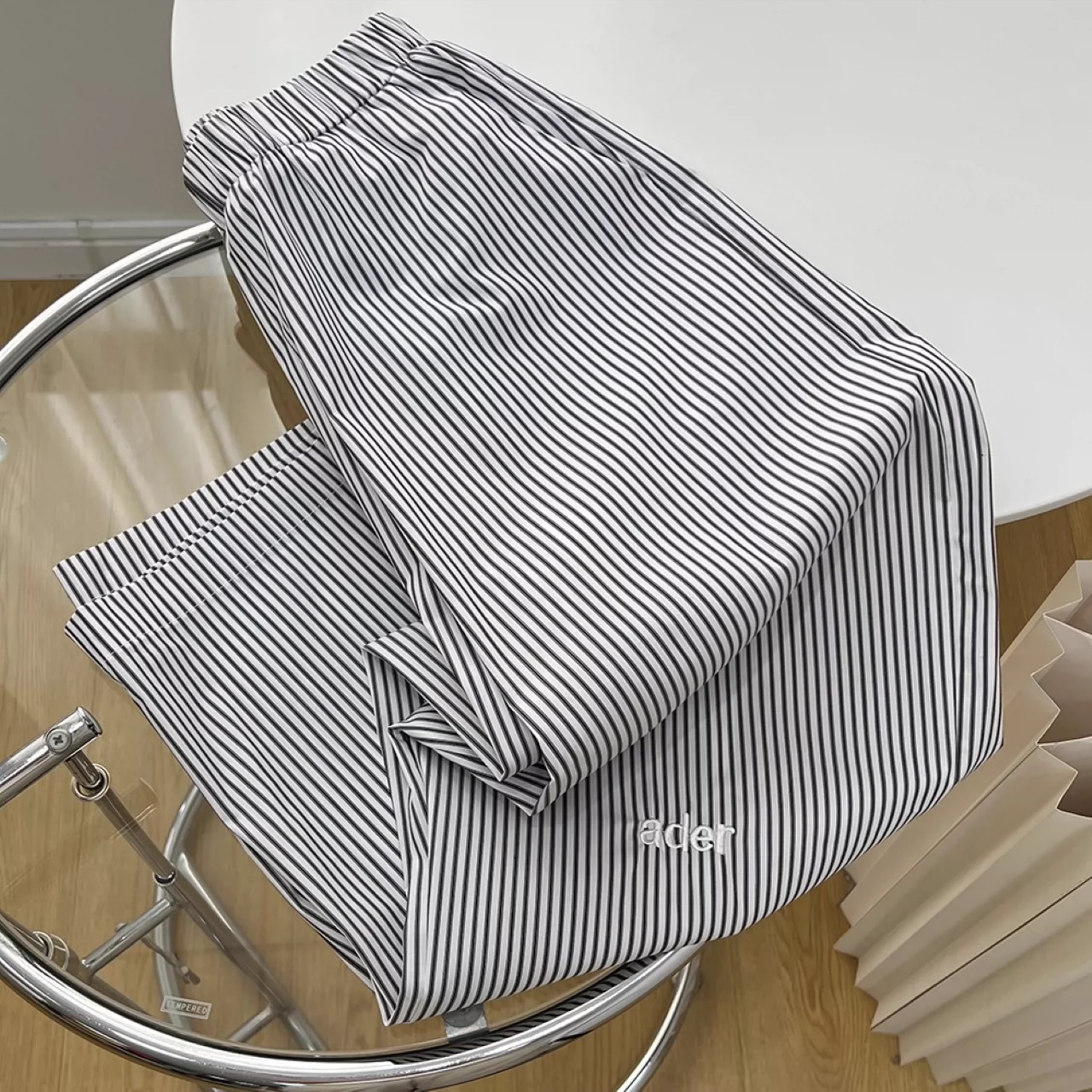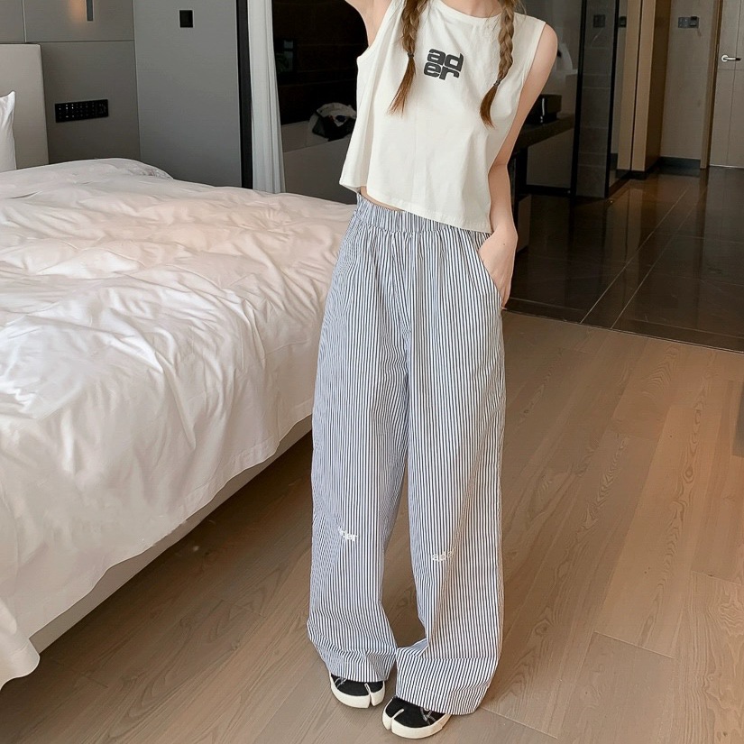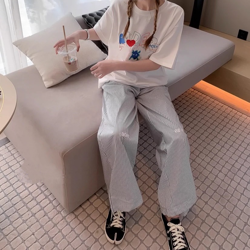 재고 한국식 ADER 스트라이프 팬츠 남녀 여름 올 매치 쇼트 캐주얼 팬츠 편안한 올 매치 스트레이트 팬츠 트렌디스토어 가기