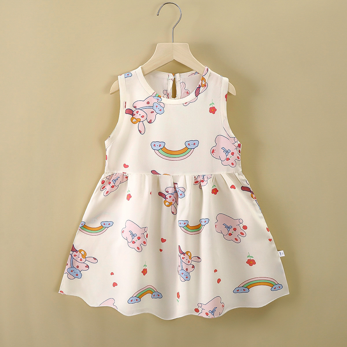 여자 면화 실크 원피스 여름 꽃 공주 원피스 해변 원피스 새로운 여자 조끼 대외 무역 어린이 의류 도매스토어 가기