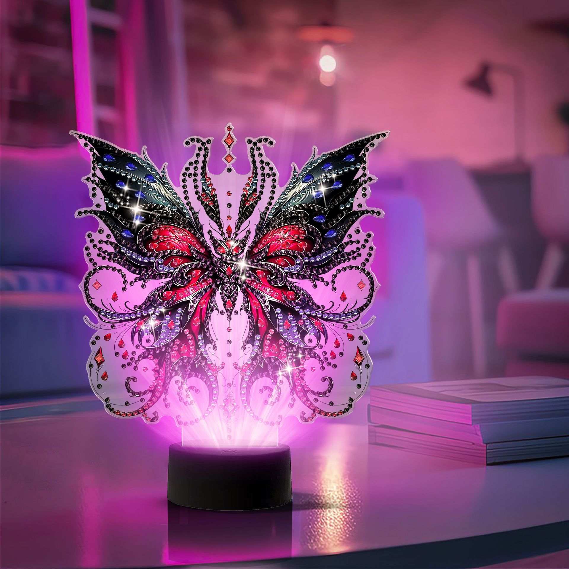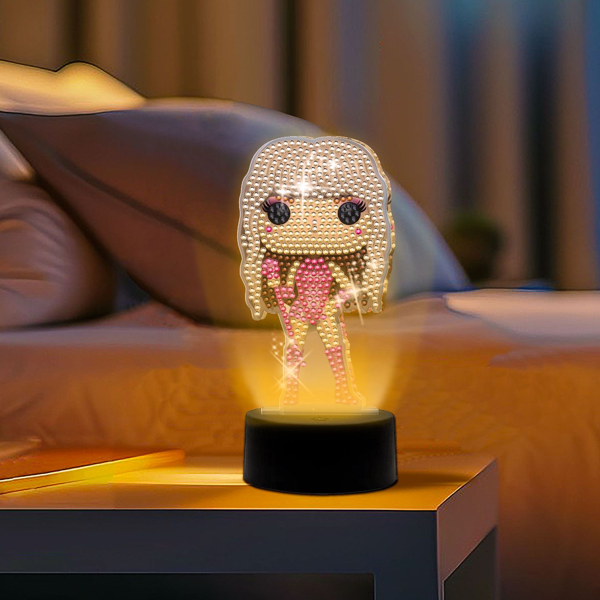 국경 간 캐릭터 시리즈 DIY 다이아몬드 그림 라이트 플레이트 특수 모양의 크리스탈 드릴 포인트 스티커 달 요정 장식 led 야간 조명