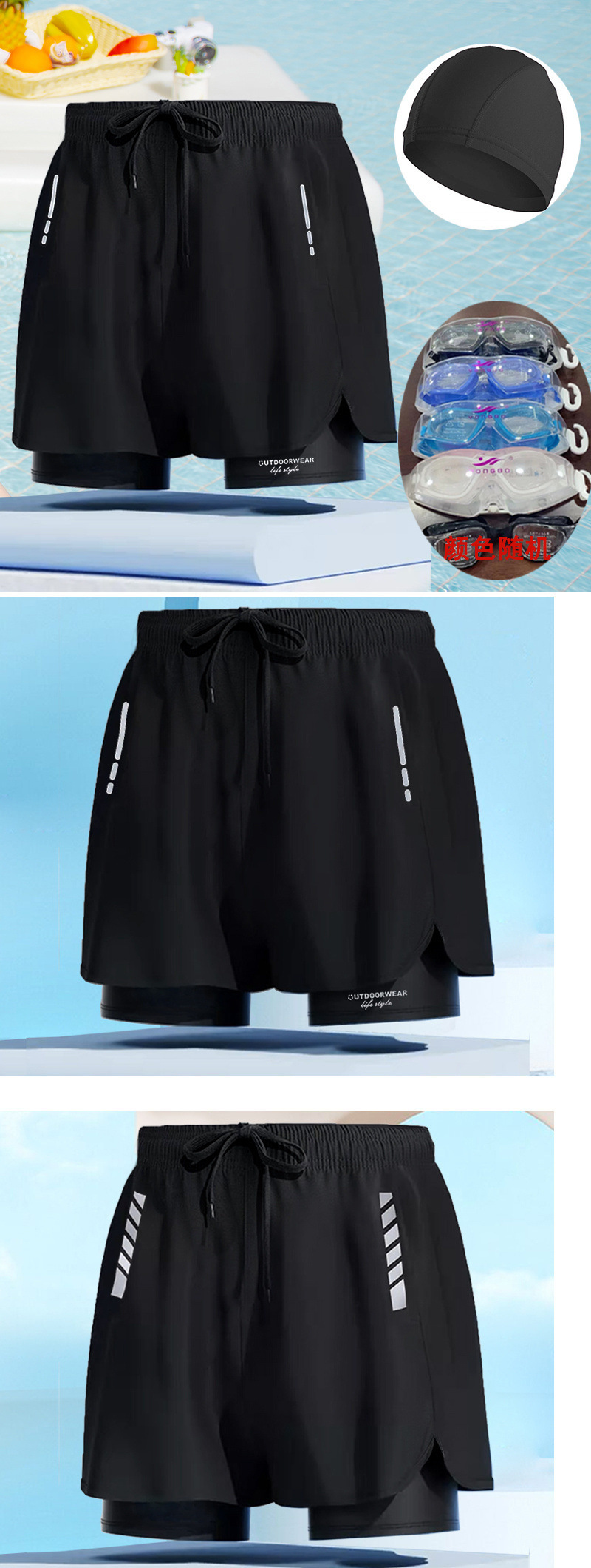 • 남색 당황 방지 [수영 트렁크 + 수영 모자 + 수영 고글]