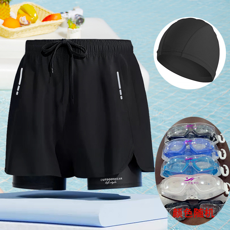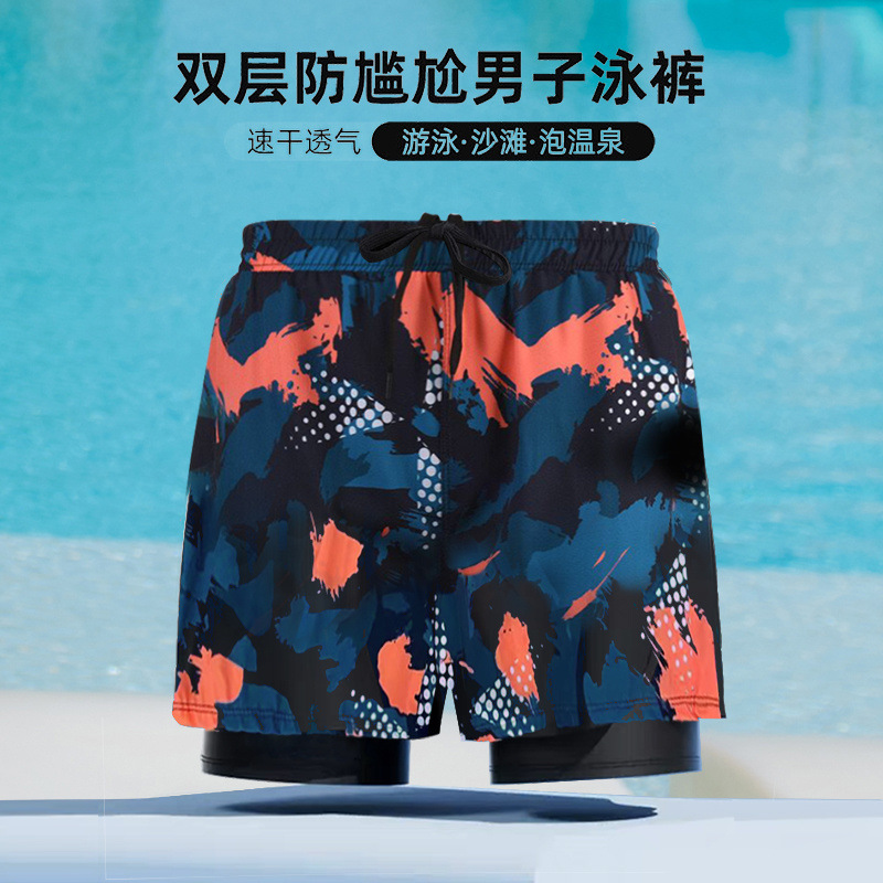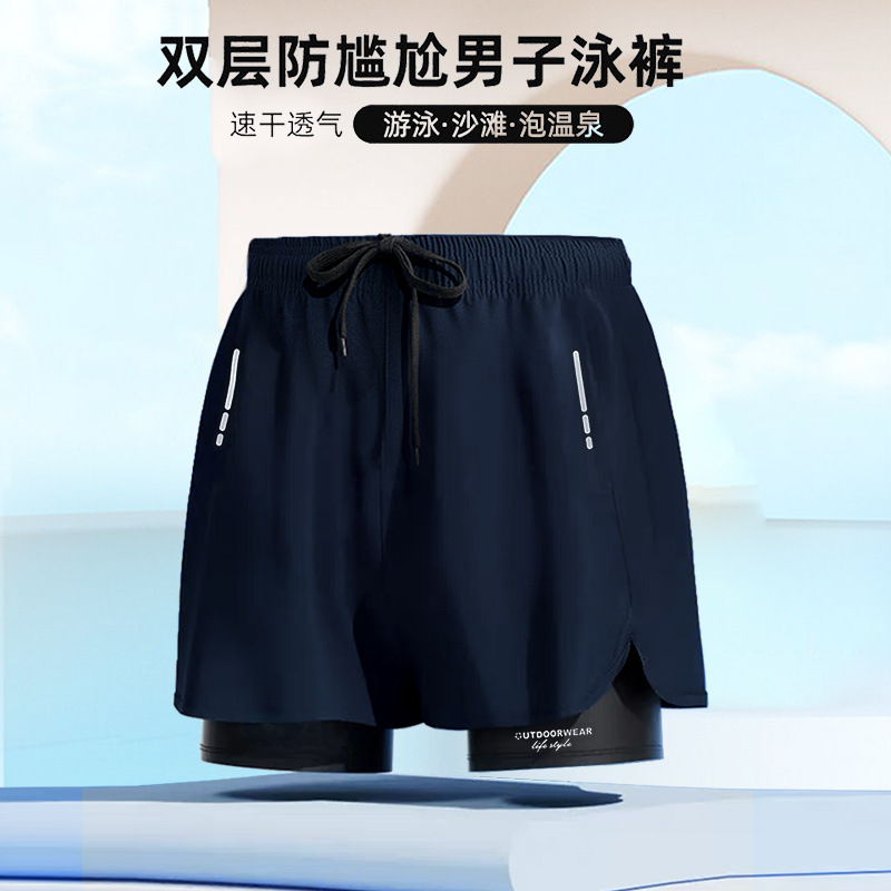 남성용 플러스 사이즈 수영복, 이중층 당황 방지 수영복, 남성용 수영복, 성인용 온천 수영복