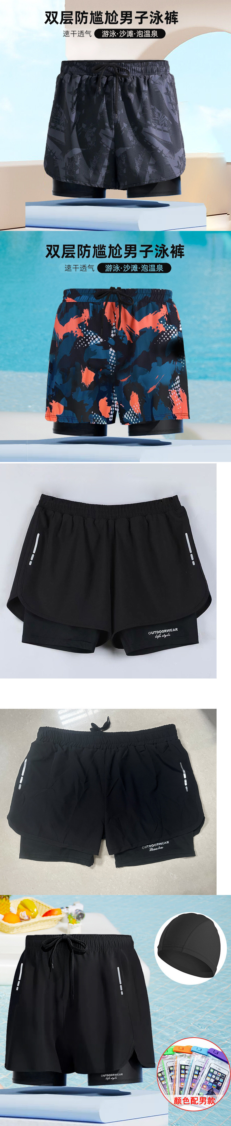 남성용 플러스 사이즈 수영복, 이중층 당황 방지 수영복, 남성용 수영복, 성인용 온천 수영복스토어 가기