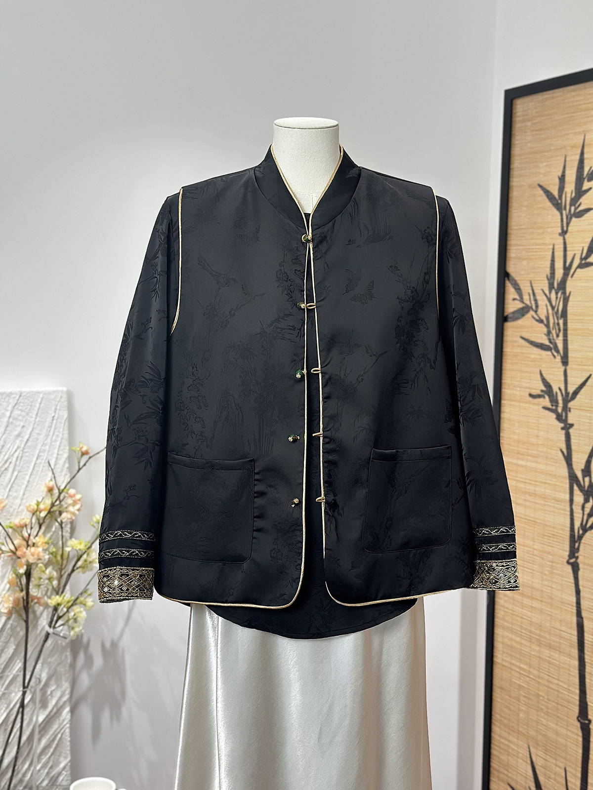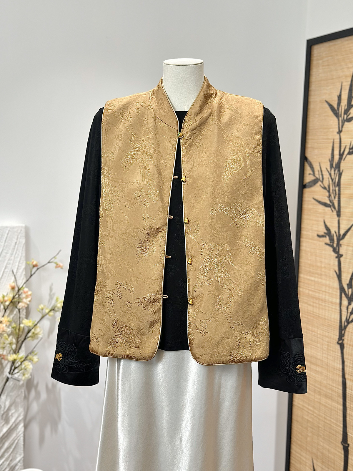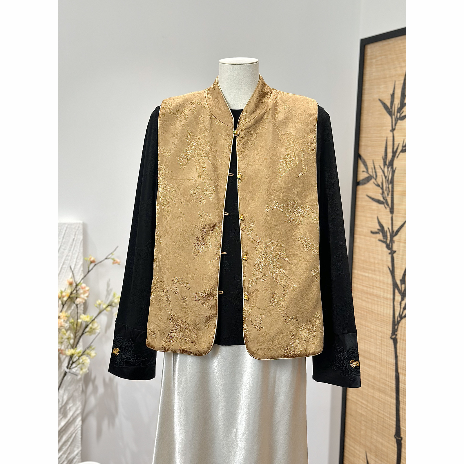 새로운 중국 스타일 양면 칼라 조끼 여성 봄 새로운 레트로 자카드 싱글 브레스트 국가 스타일 캐주얼 우아한 탑