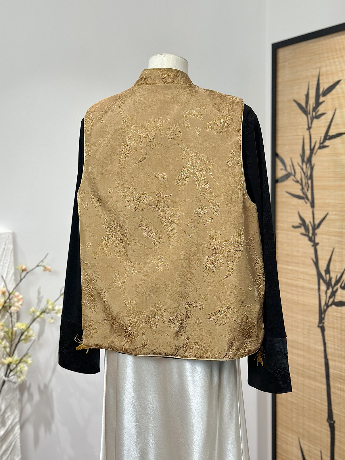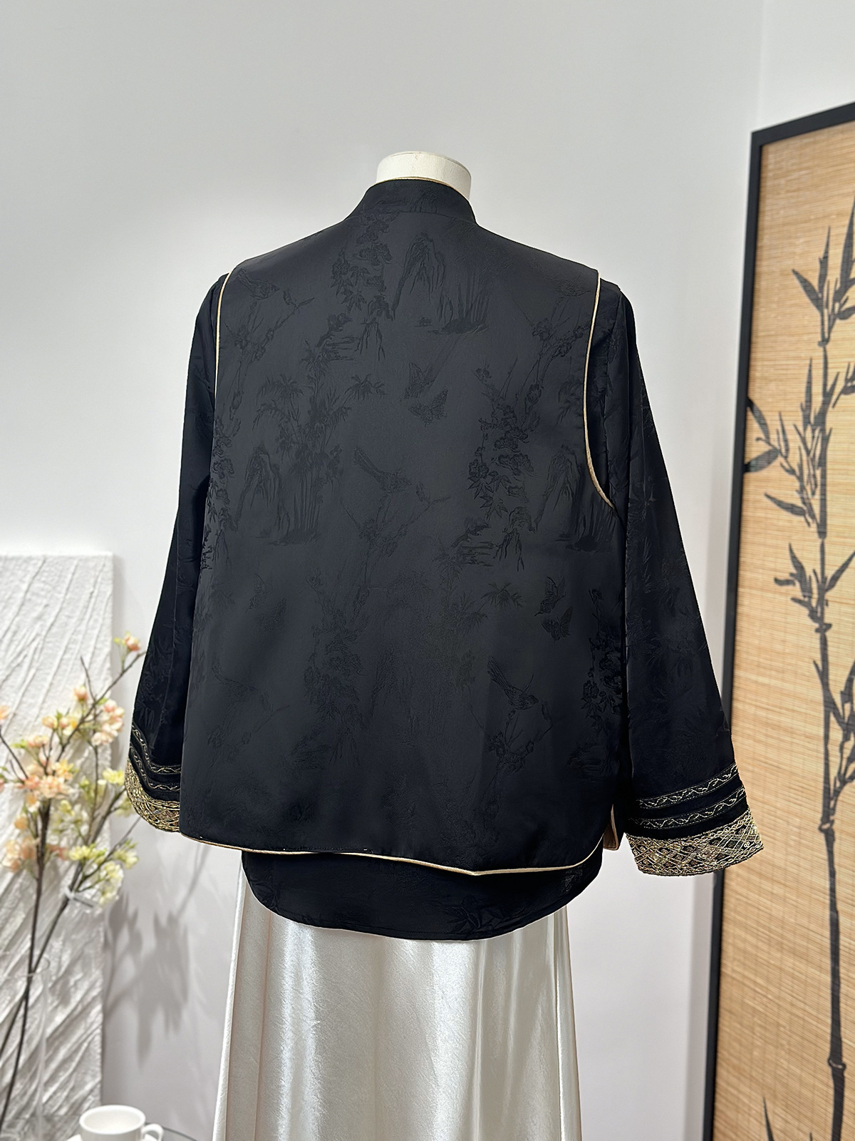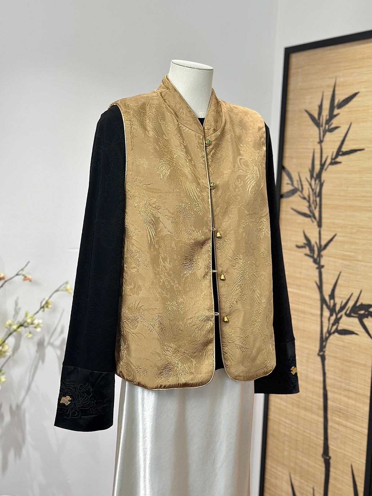 새로운 중국 스타일 양면 칼라 조끼 여성 봄 새로운 레트로 자카드 싱글 브레스트 국가 스타일 캐주얼 우아한 탑