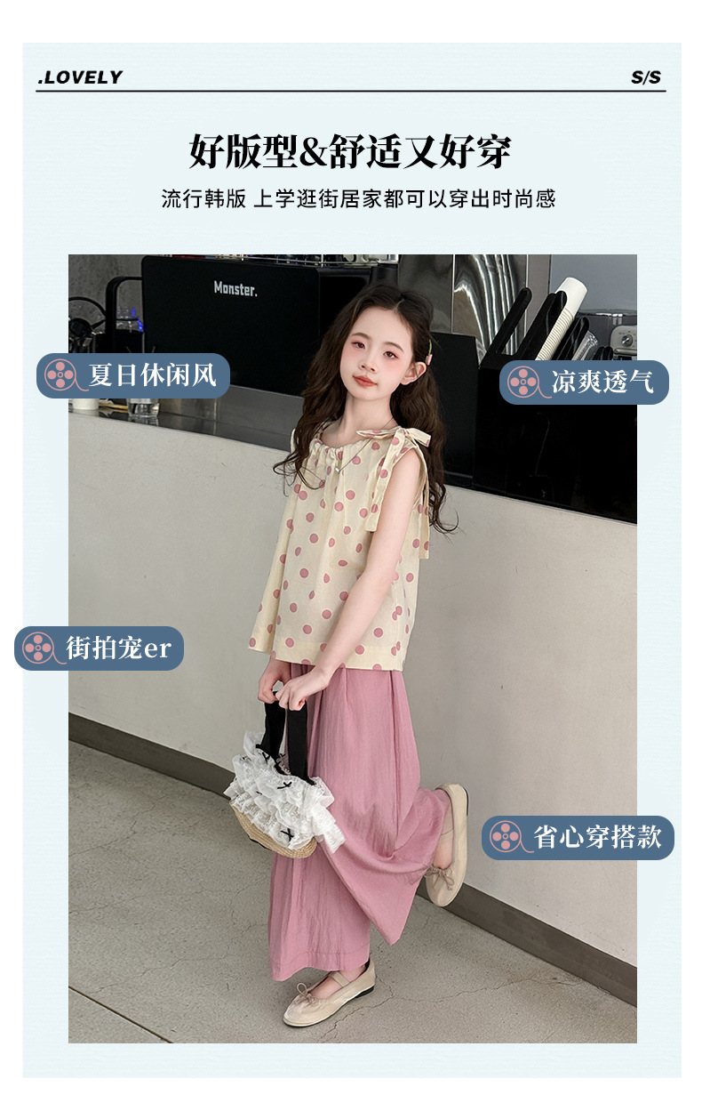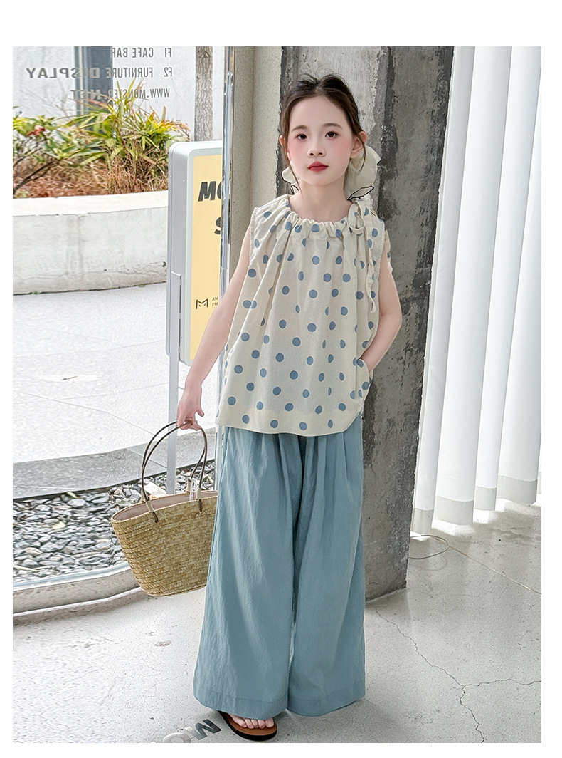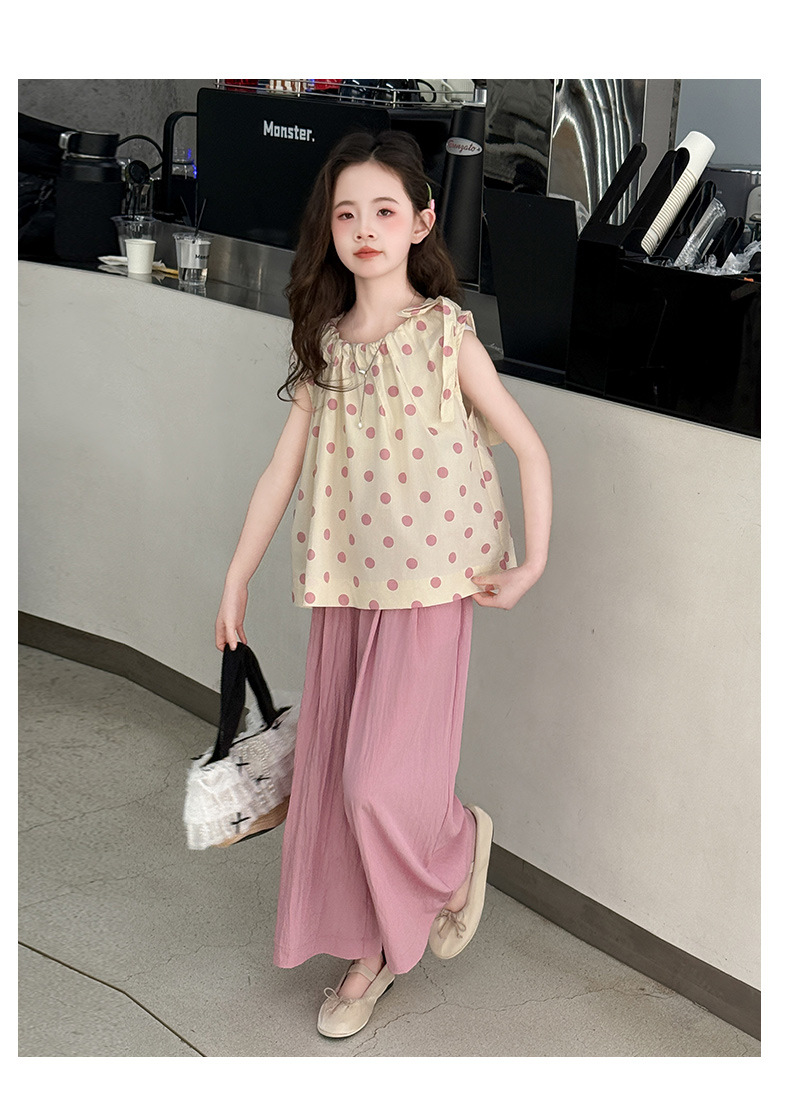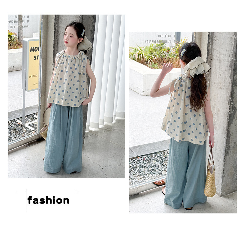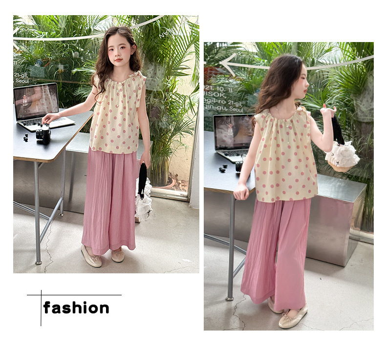 소녀 여름 새로운 민소매 티셔츠 어린이 폴카 도트 옷 서양식 소녀 느슨한 큰 아이를 세트 어린이 의류스토어 가기