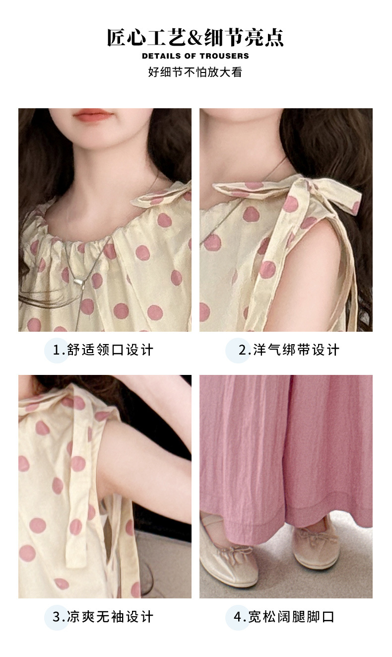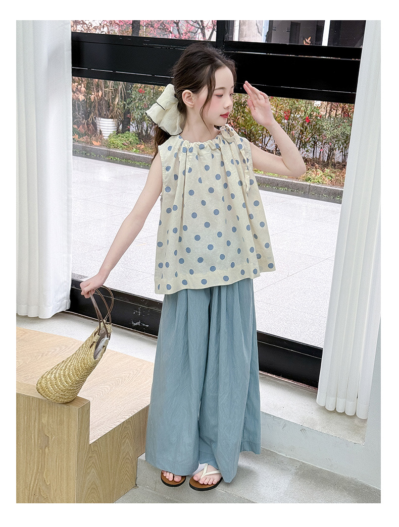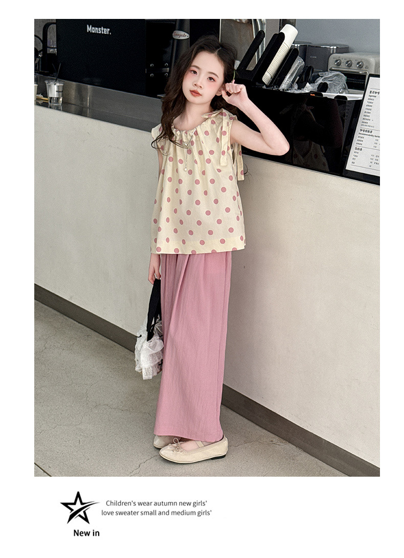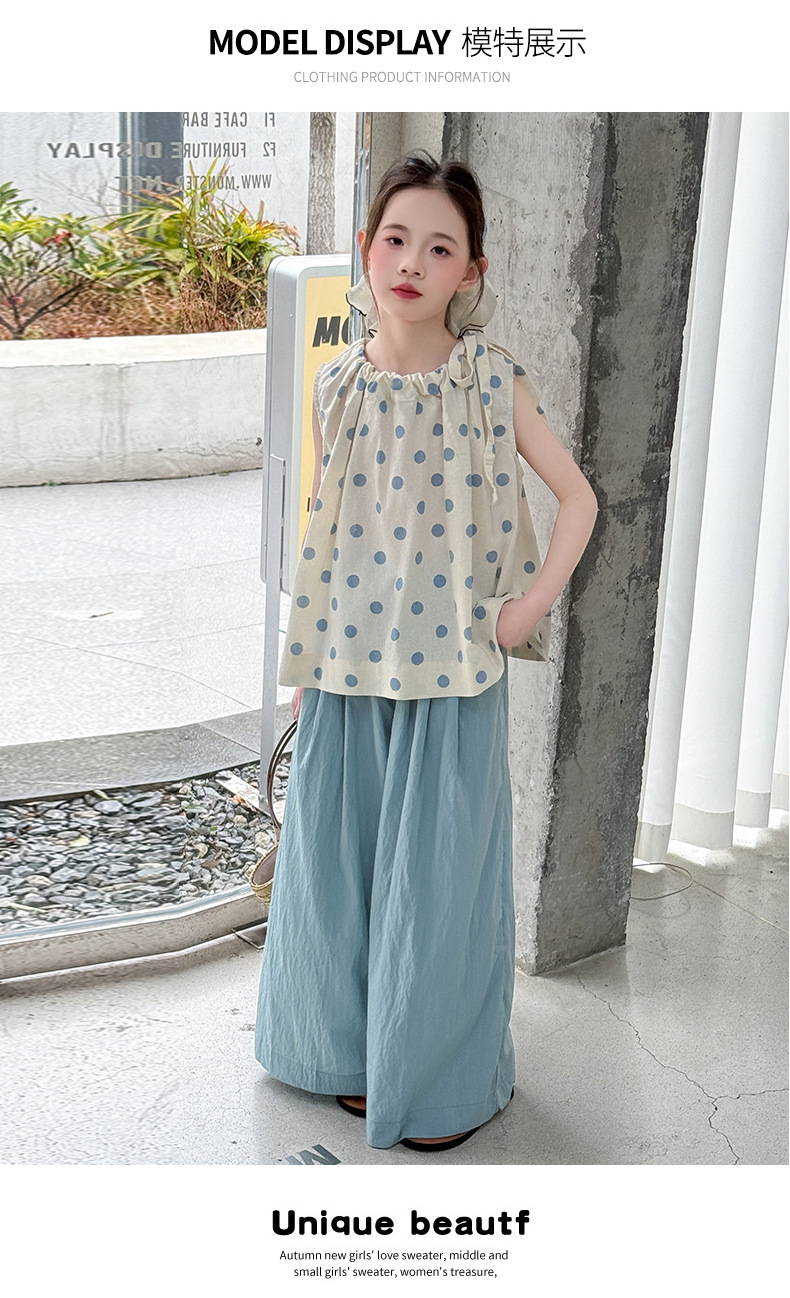 소녀 여름 새로운 민소매 티셔츠 어린이 폴카 도트 옷 서양식 소녀 느슨한 큰 아이를 세트 어린이 의류