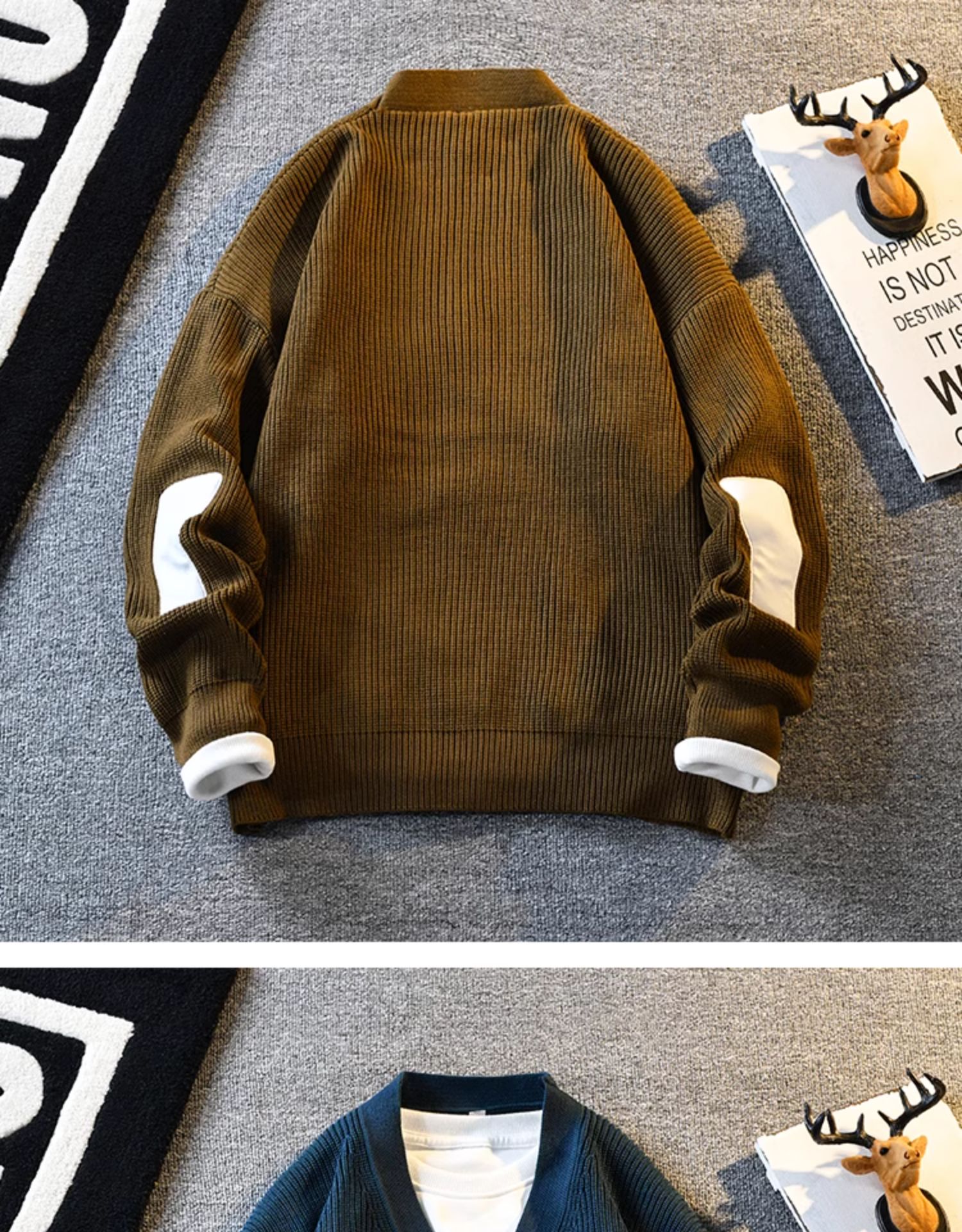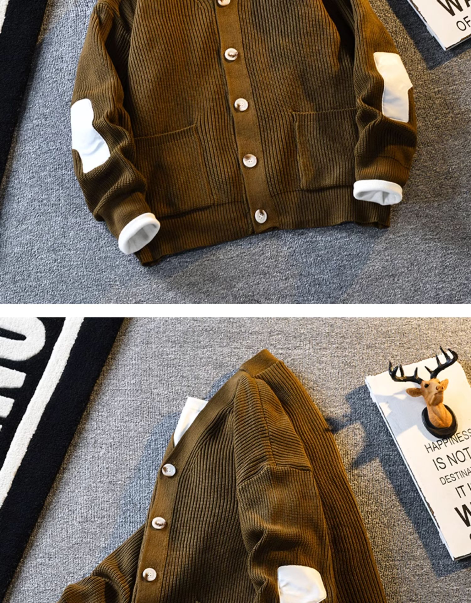 2025 스플라이스 빈티지 콘트라스트 컬러 카디건 스웨터 남성 봄 트렌디 브랜드 섹시한 V 넥 스웨터 남성 자켓스토어 가기