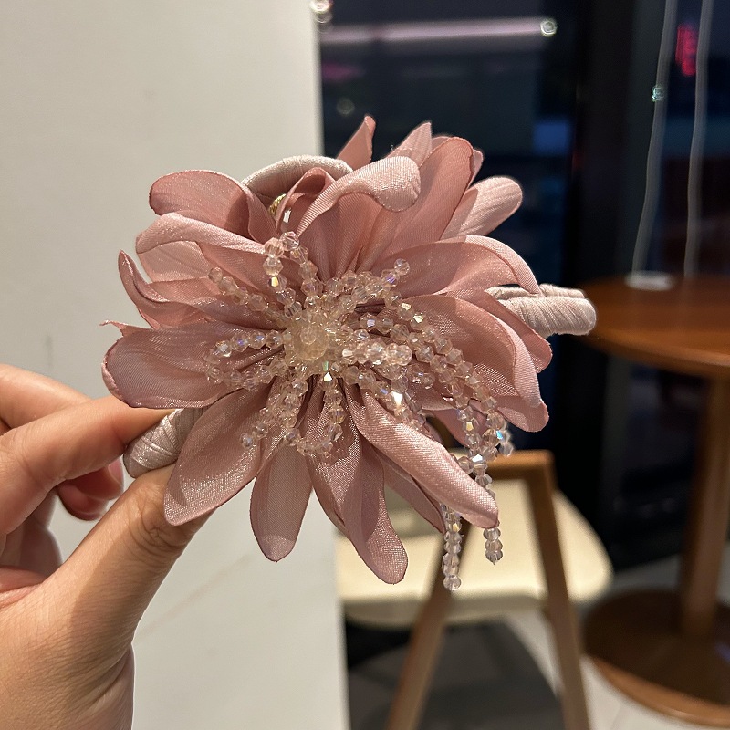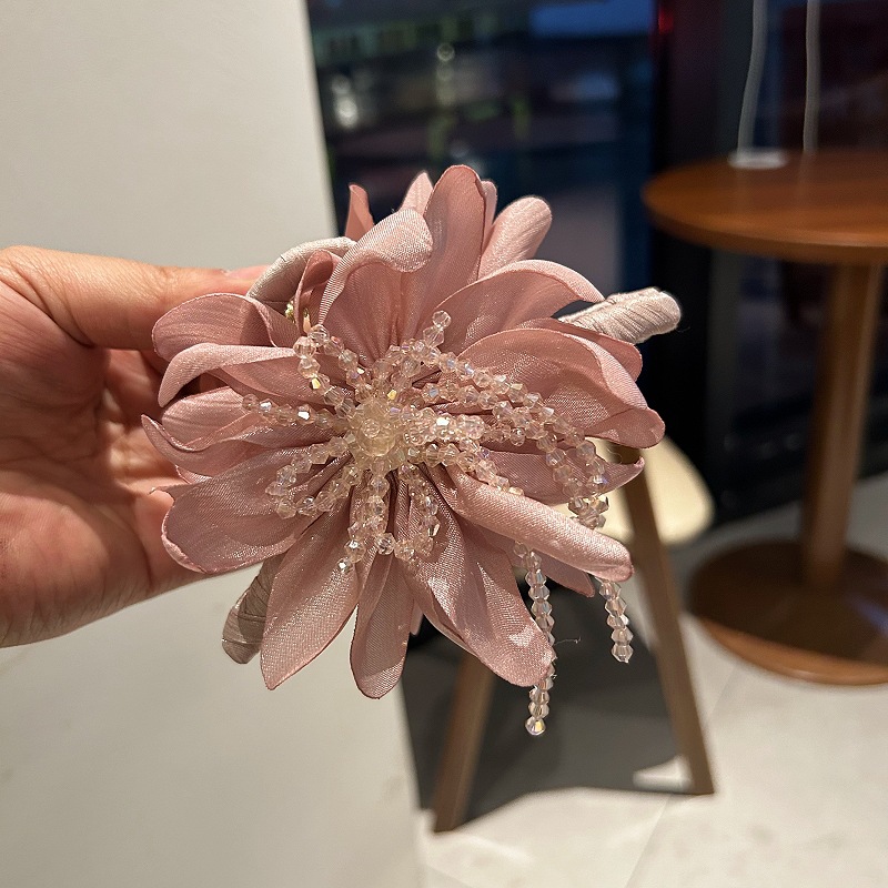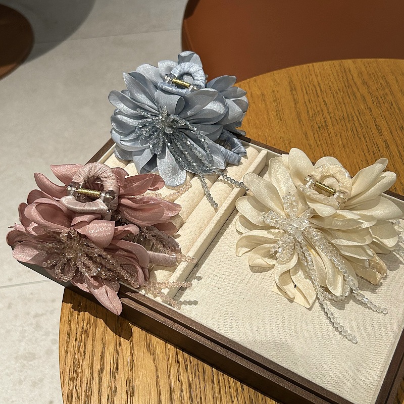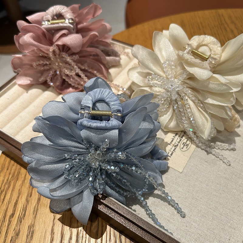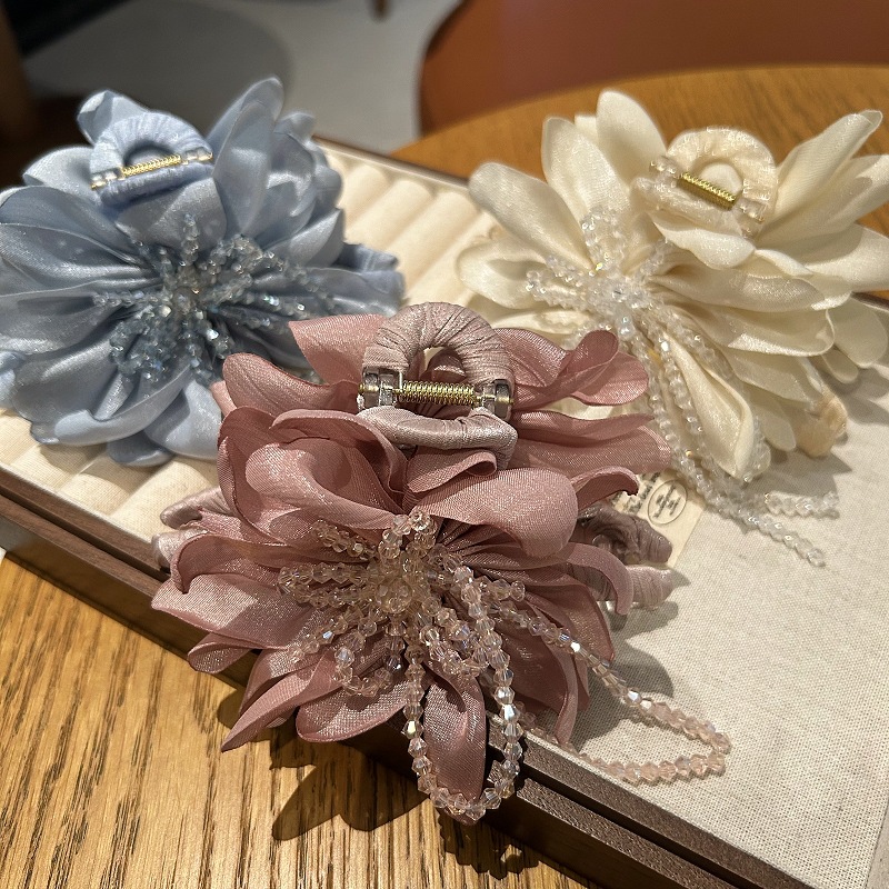 분위기 슈퍼 요정 프랑스 스타일 3 차원 꽃 그랩 클립 라이트 럭셔리 하이 레벨 활 구슬 상어 클립 헤어 디스크 헤드
