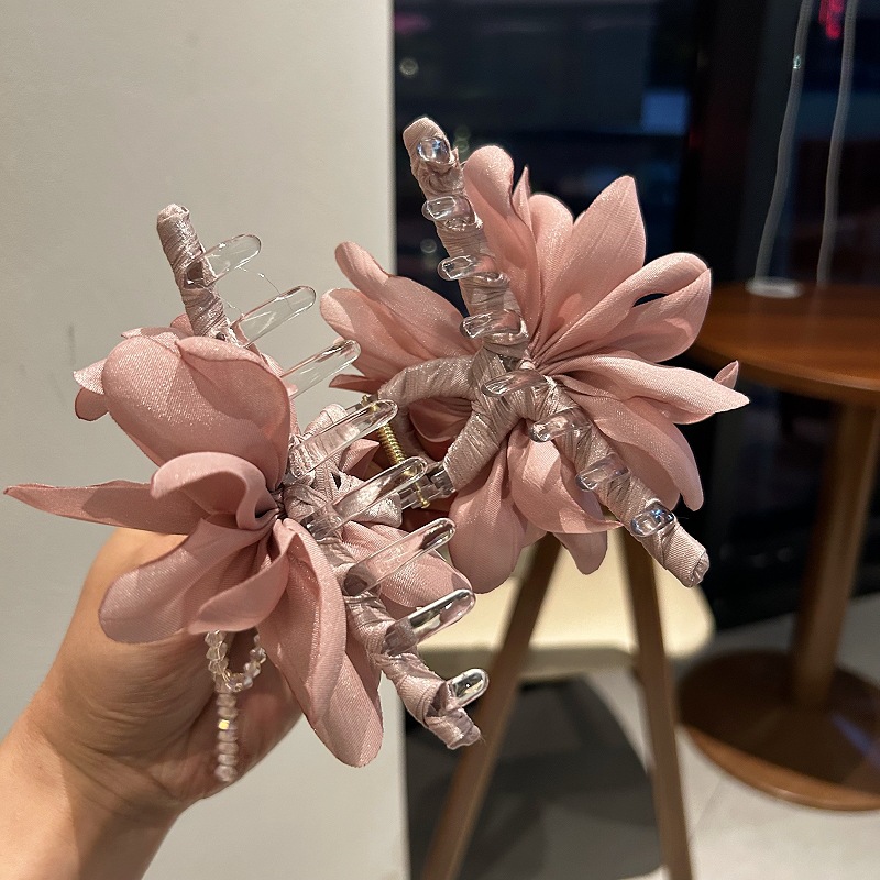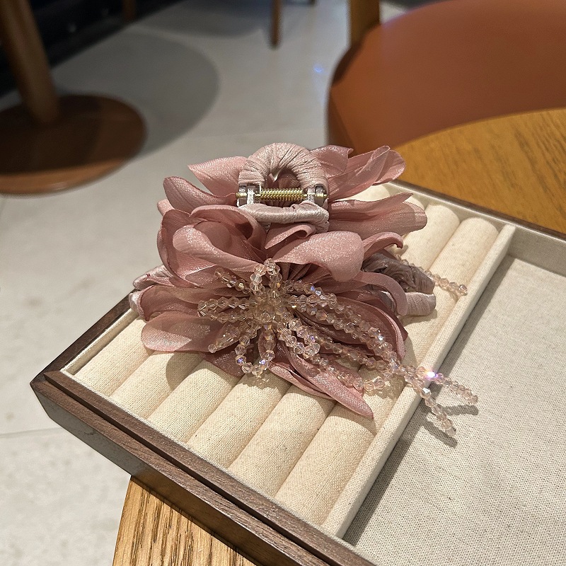 분위기 슈퍼 요정 프랑스 스타일 3 차원 꽃 그랩 클립 라이트 럭셔리 하이 레벨 활 구슬 상어 클립 헤어 디스크 헤드스토어 가기