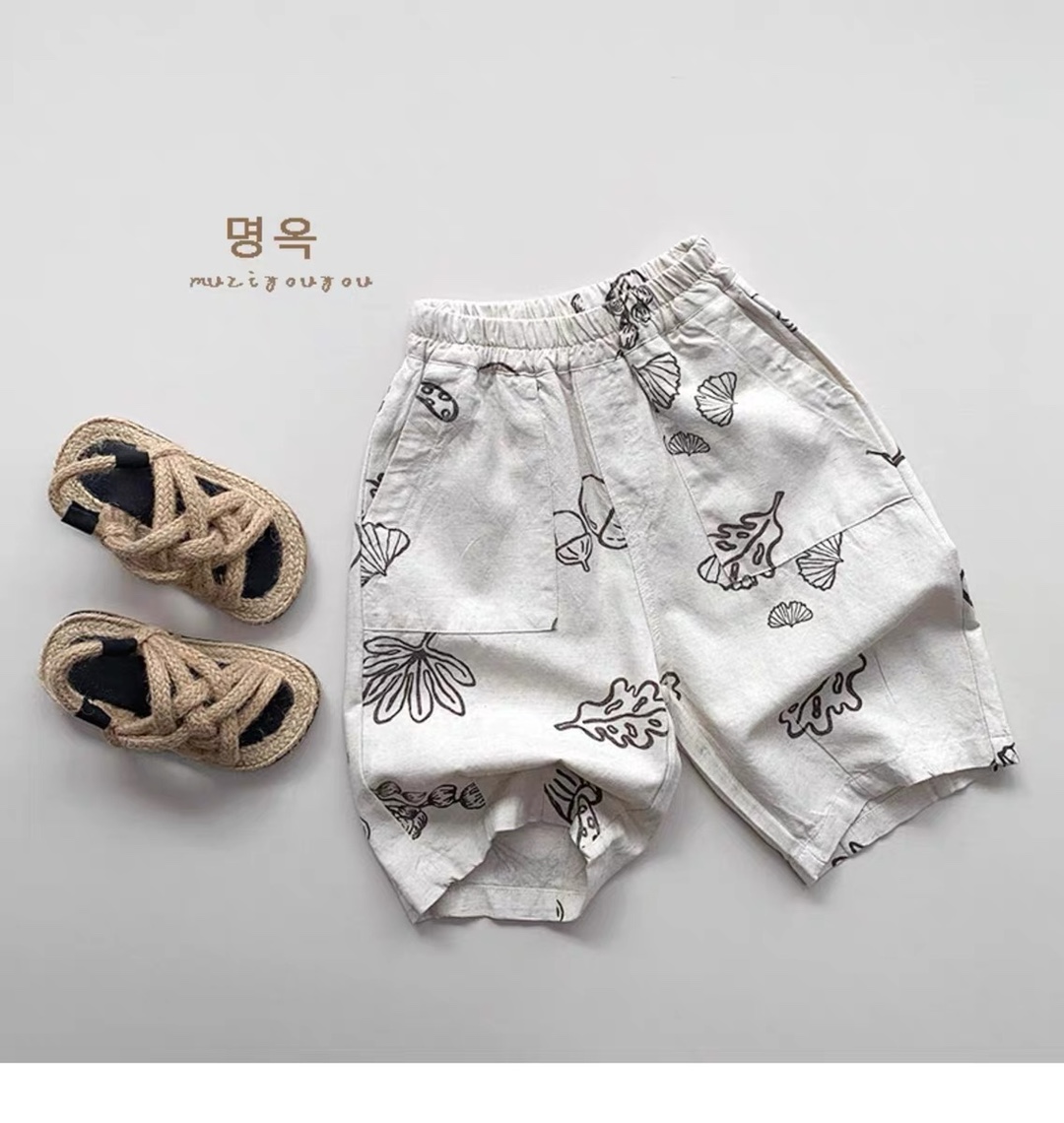 리넨 컬러 인쇄 ~ 자연 캐주얼 바지 소년 소녀를위한 어린이 여름 면화 및 리넨 카프리 바지 아기 성격 유행 아동복