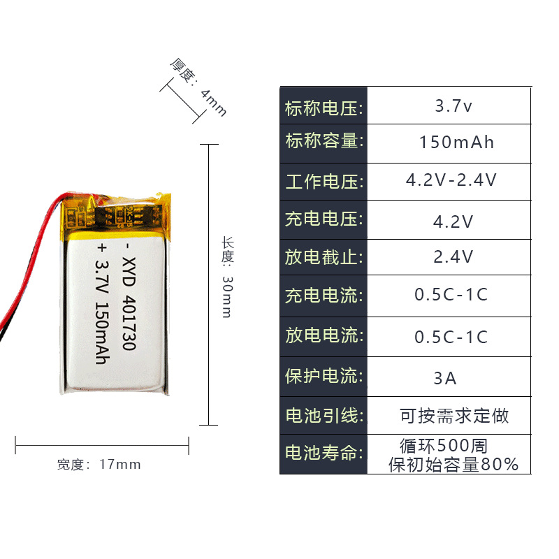 401730 폴리머 리튬 배터리 150mAh 블루투스 헤드셋 포인트 읽기 펜 디지털 제품 미용 기기 고온 3.7v
