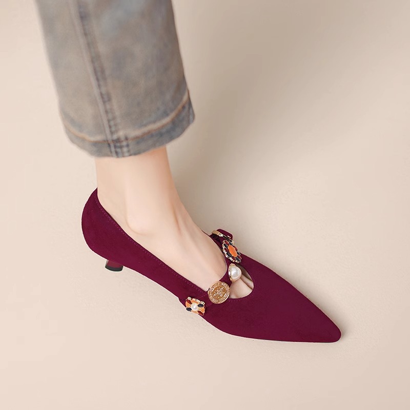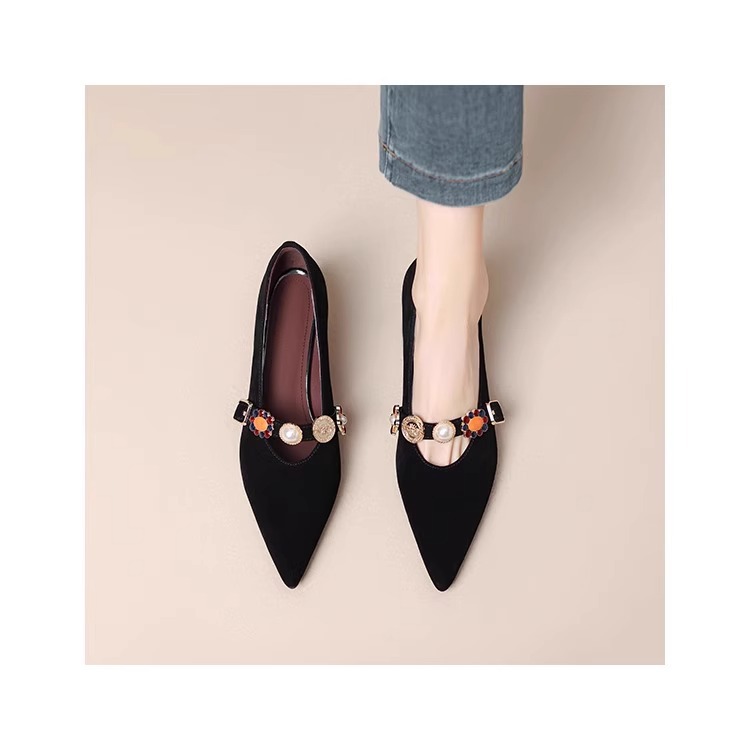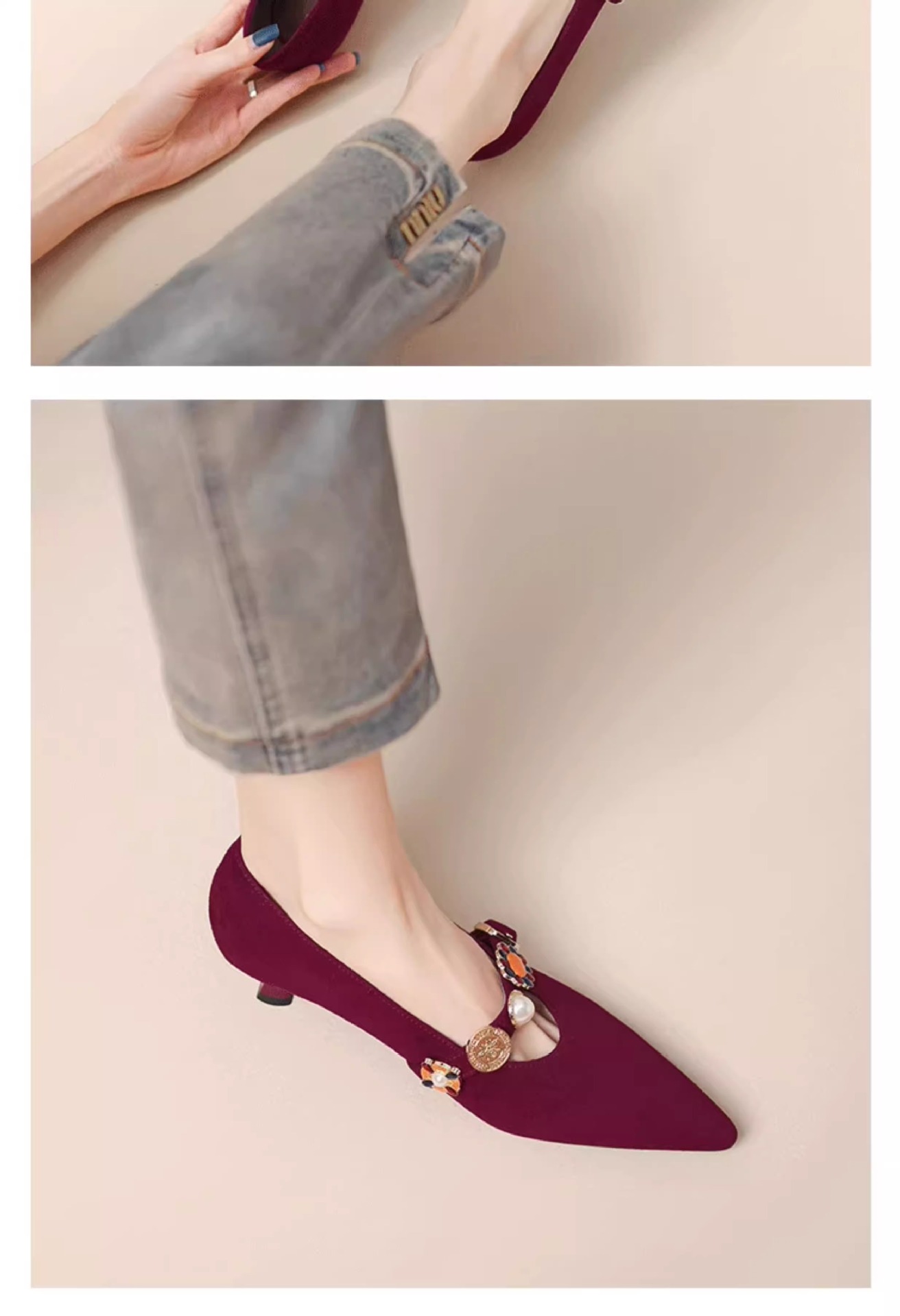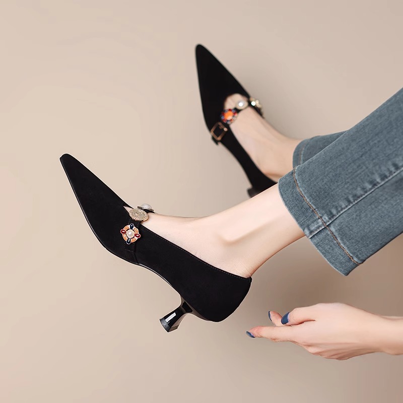재고 있음! 2025년 봄 신상 프렌치 스타일 뾰족코 하이힐, 스커트와 잘 어울리는 디자인의 여성용 다용도 슈즈