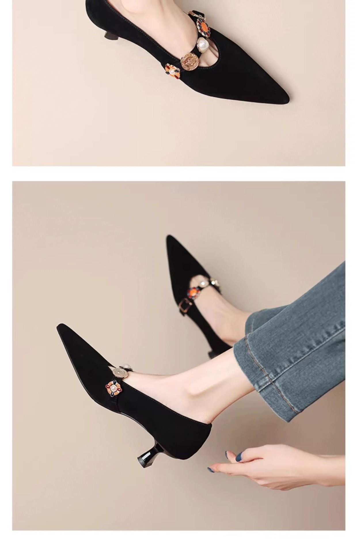 재고 있음! 2025년 봄 신상 프렌치 스타일 뾰족코 하이힐, 스커트와 잘 어울리는 디자인의 여성용 다용도 슈즈스토어 가기