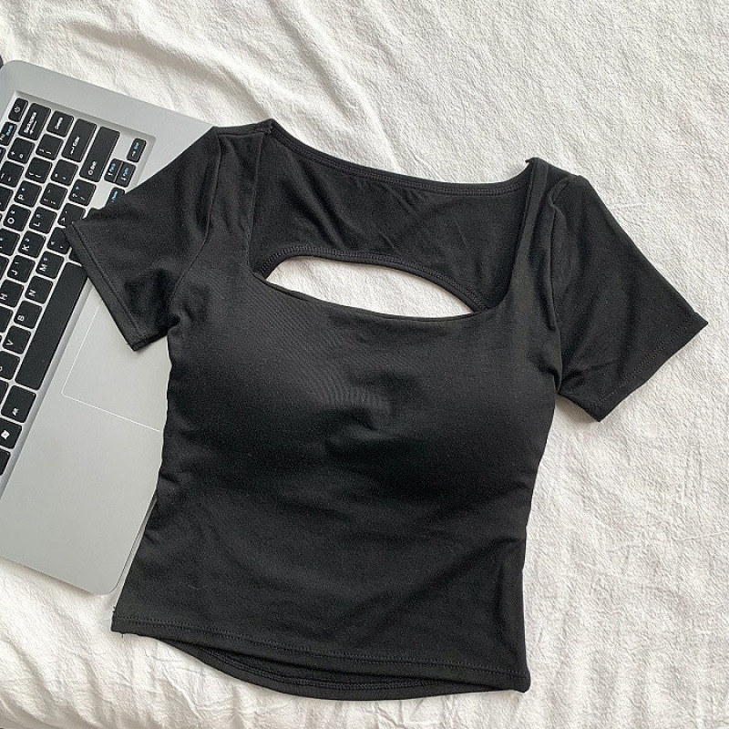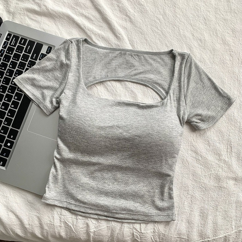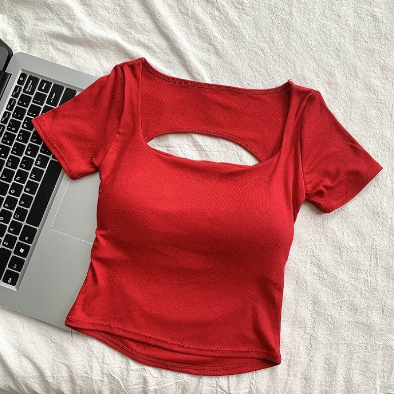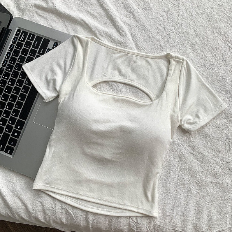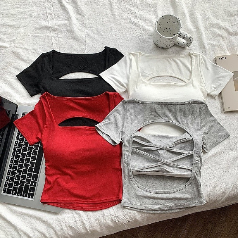 순수한 욕망 스타일 섹시 백리스 반팔 셔츠 여성용 여름 새 스타일 배꼽 노출 짧은 달콤하고 매운 아름다운 백탑 여성용 가슴 패드스토어 가기