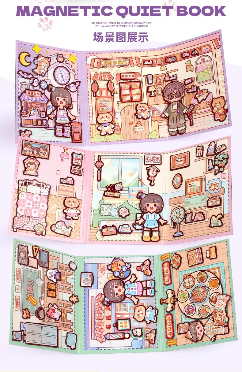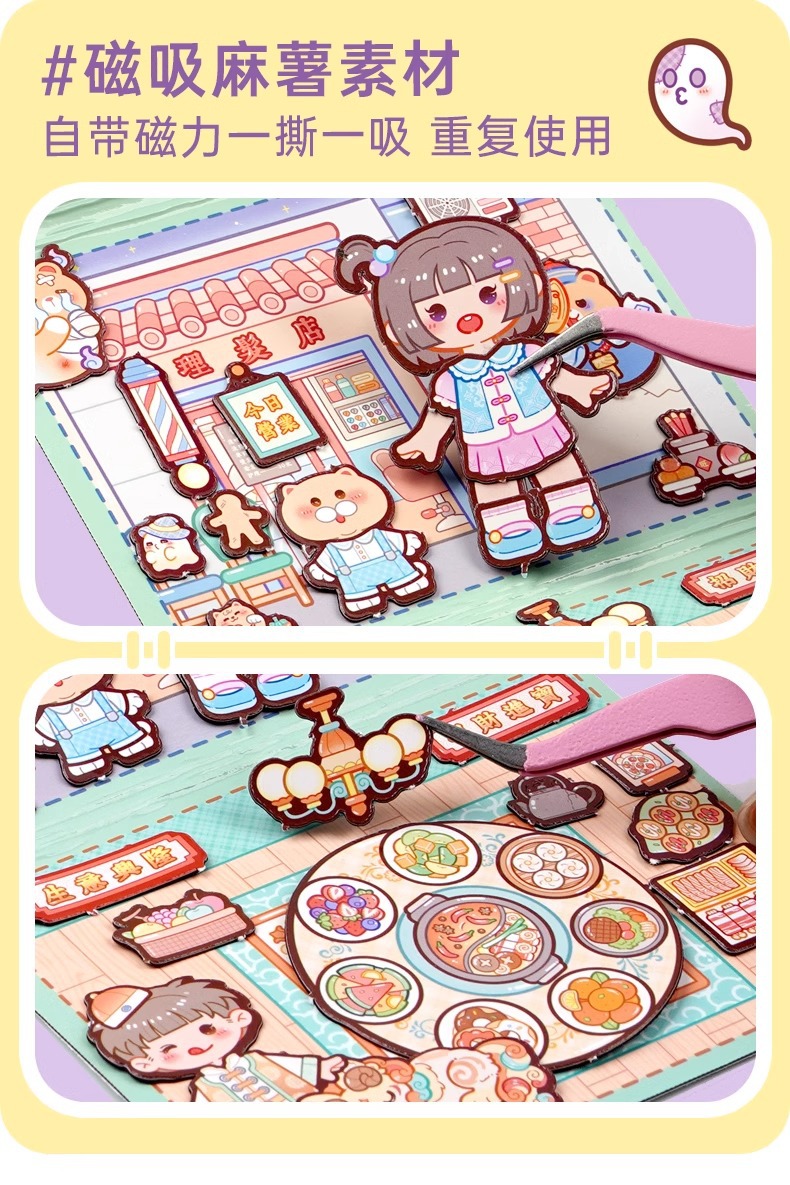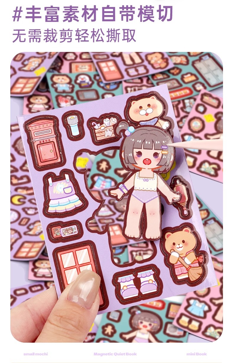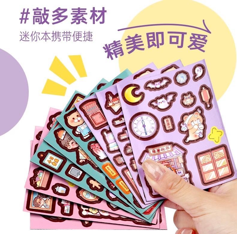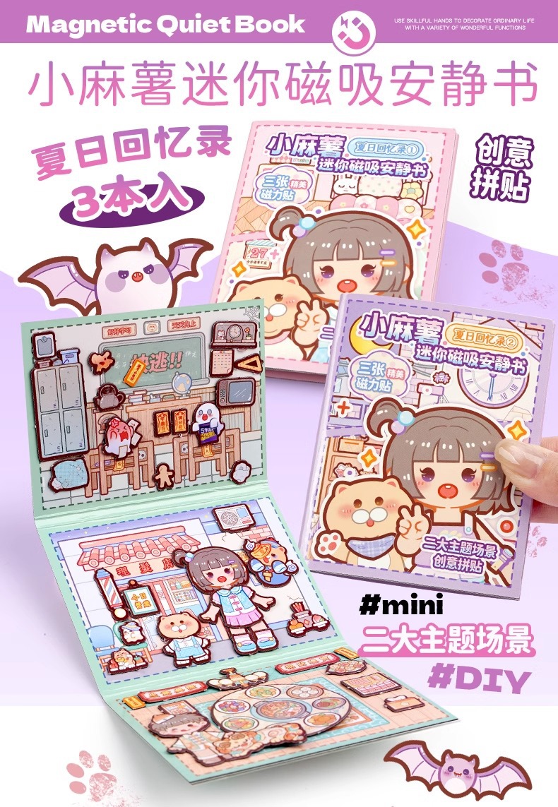 작은 감자 미니 자기 조용한 책 스티커 창조적 인 세 접는 장면 스티커 어린이 수제 DIY 콜라주 책스토어 가기