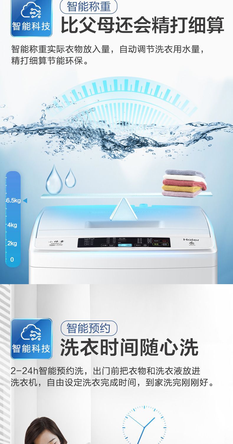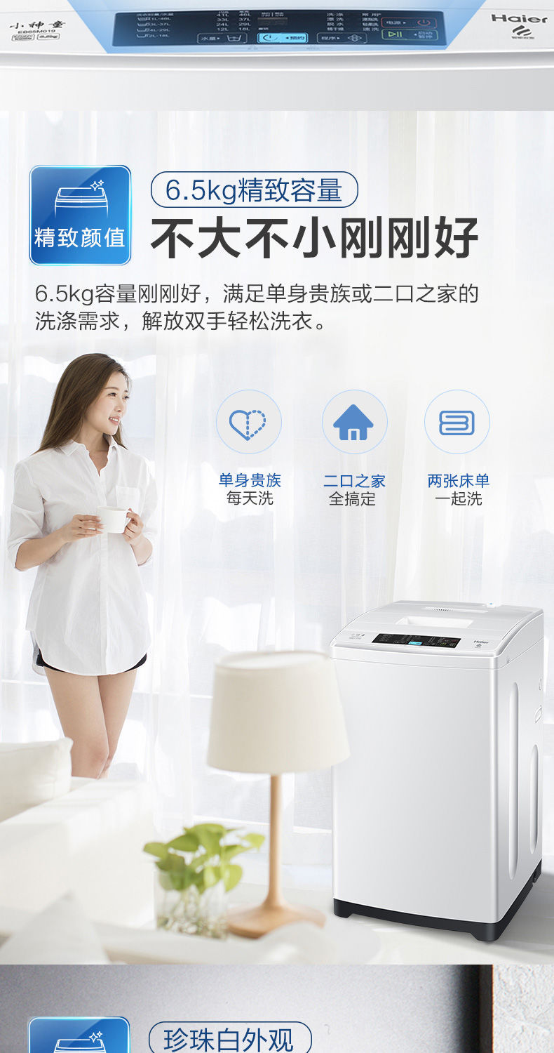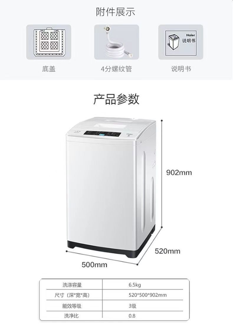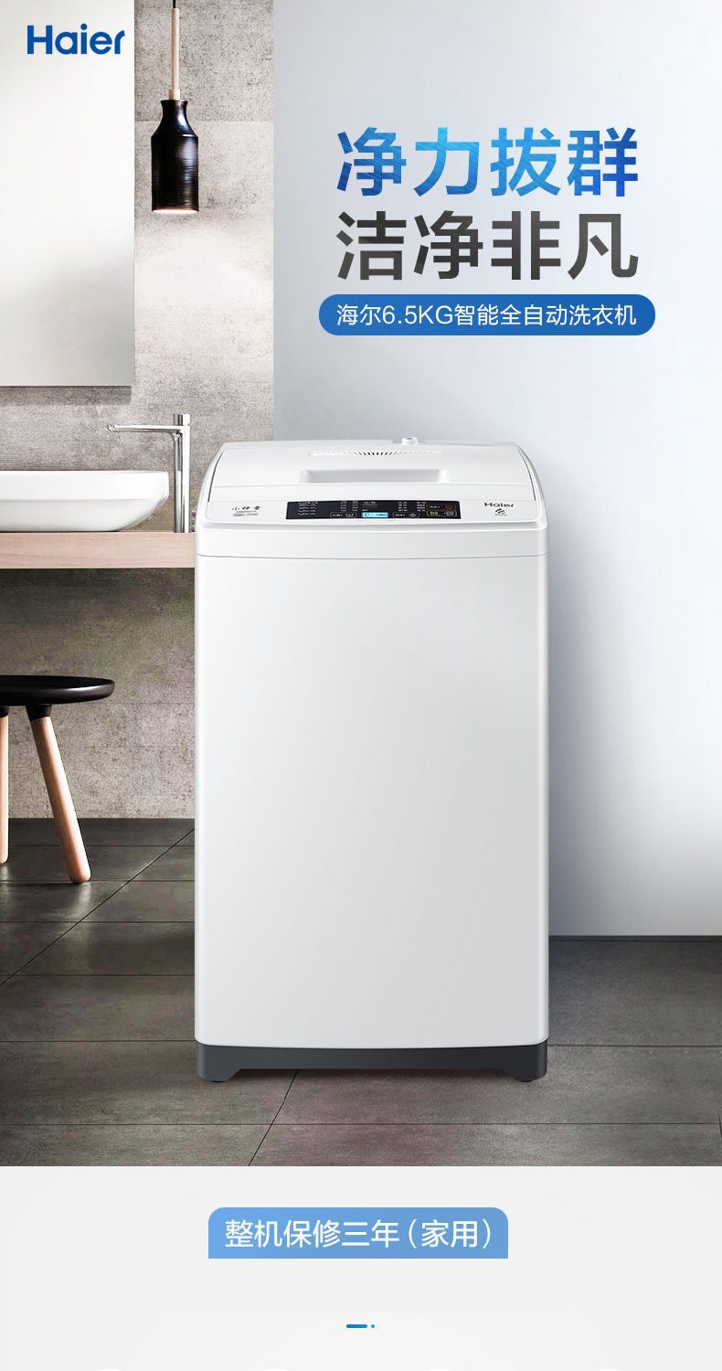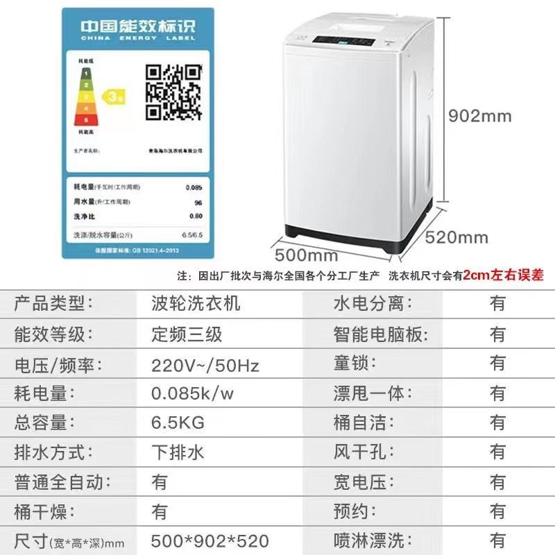 • 하이얼 세탁기 완전 자동 가정용 6.5kg 에너지 절약형 맥동기 세탁기 학생 기숙사 도매 임대