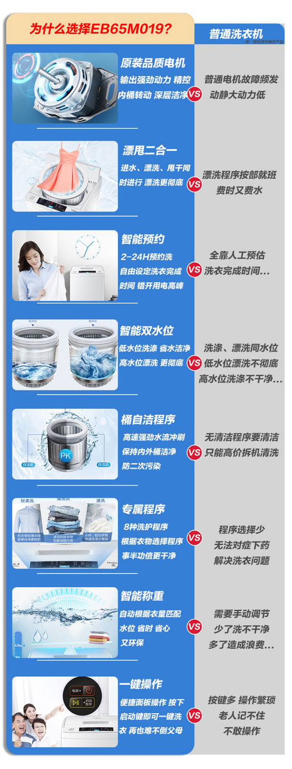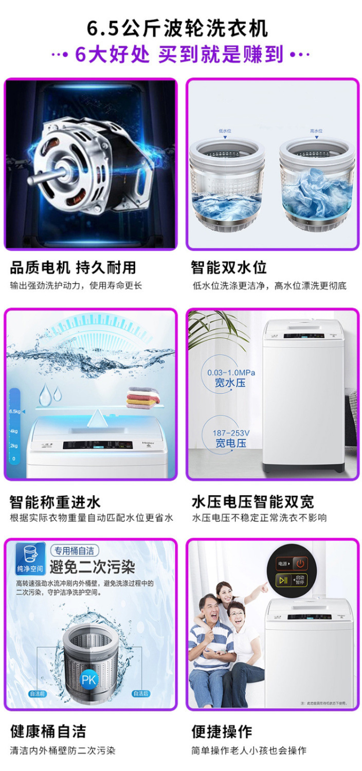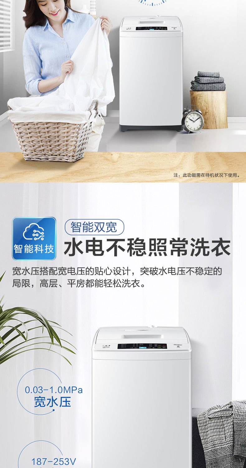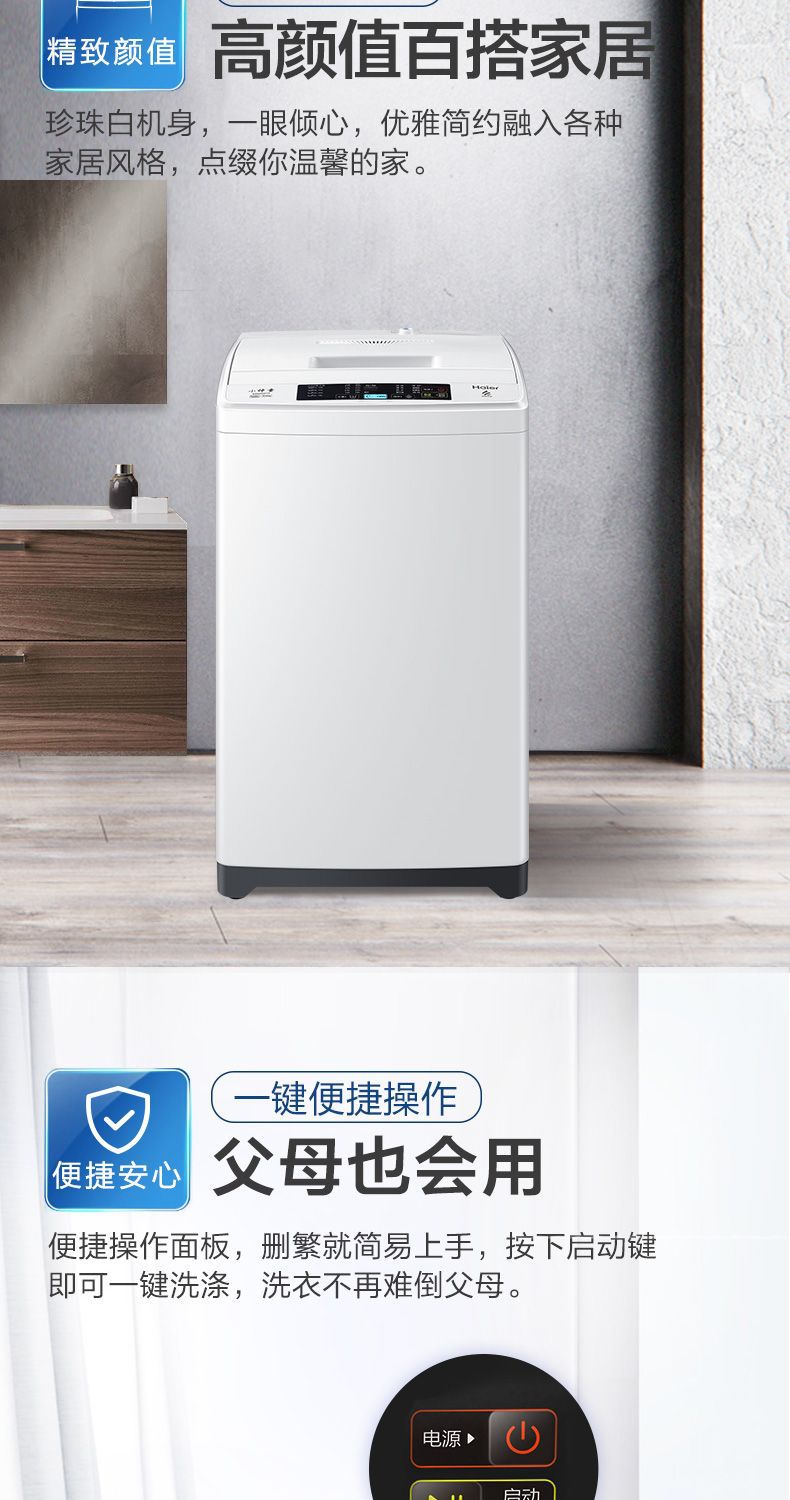 • 하이얼 세탁기 완전 자동 가정용 6.5kg 에너지 절약형 맥동기 세탁기 학생 기숙사 도매 임대