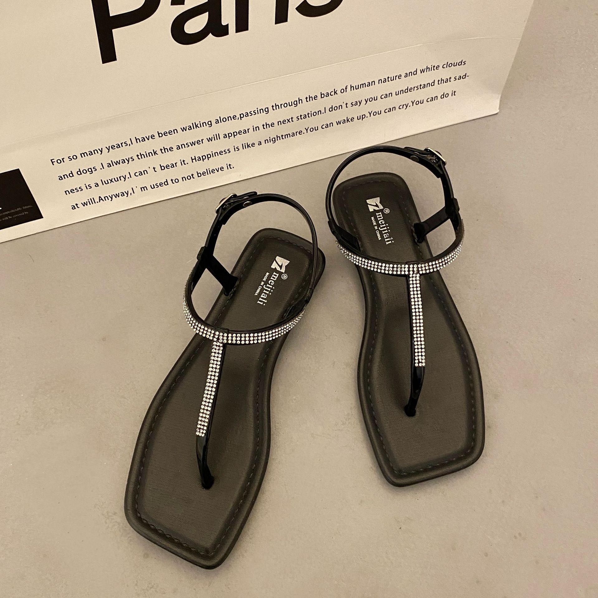 새로운 여름 요정 매칭 스커트 라인스톤 패션 신발 한국 스타일 다재다능한 소녀 플립 플롭 플랫 슈즈 플랫 편안한스토어 가기
