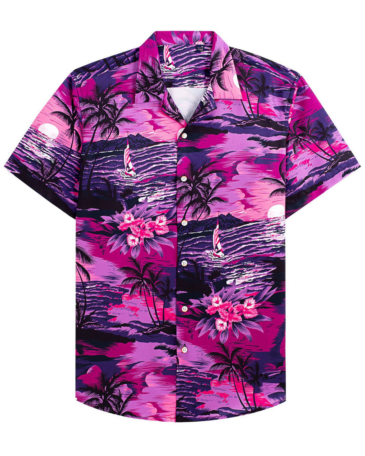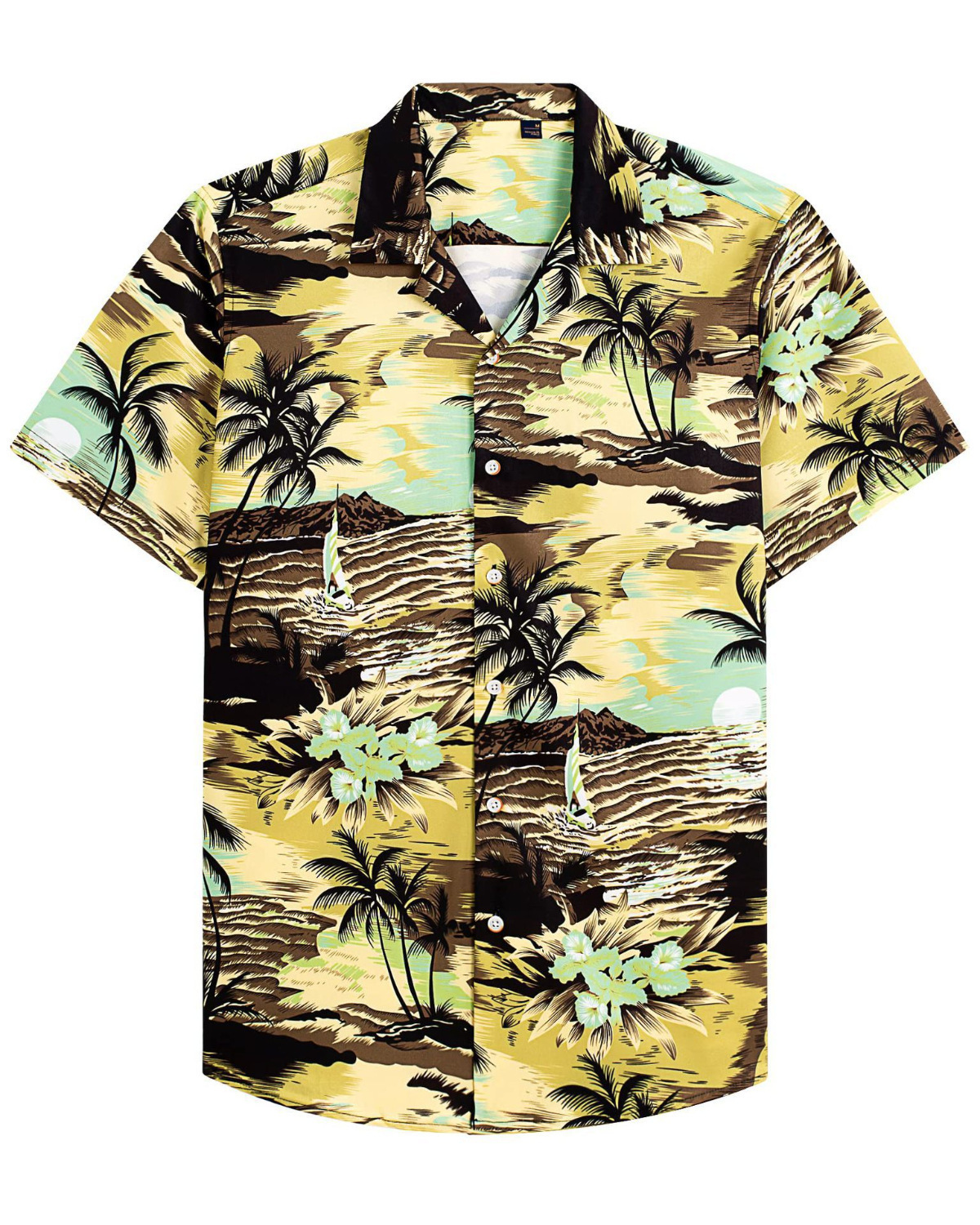 국경 간 독립 역 하와이 잎 꽃 모든 경기 최고 반팔 남성 해변 3D 인쇄 패션 셔츠