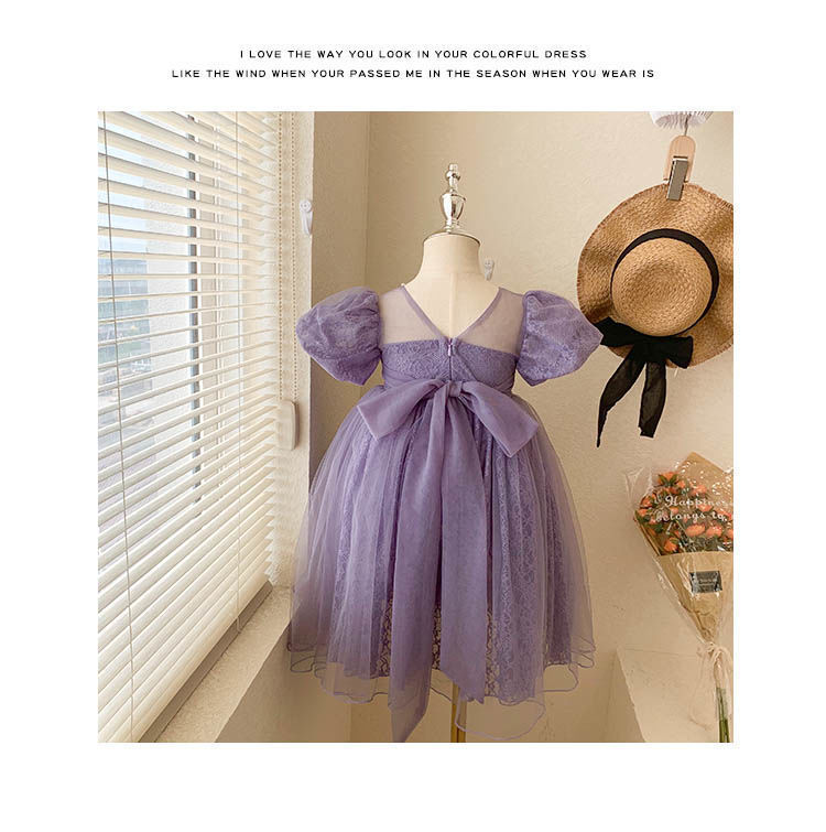여자 슈퍼 아름다운 요정 공주 드레스 2022 새로운 어린이 레이스 드레스 아기 소녀 퍼프 슬리브 달콤한 스커트스토어 가기