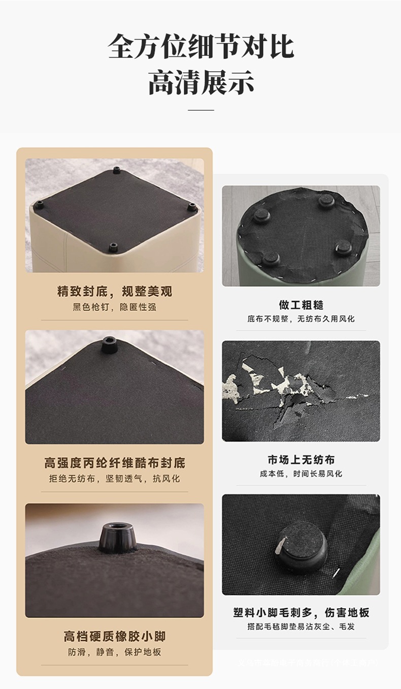 • 카키색(높이 35폭 35) 넓어진 스툴 표면과 심플한 솔기 디자인