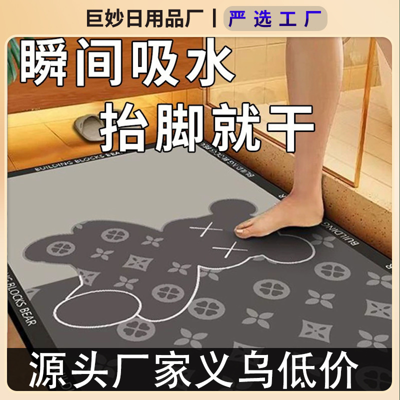 ♔ 크리스탈 벨벳 바닥 매트 새로운 폭력적인 곰 욕실 초흡수성 속건성 욕실 미끄럼 방지 홈 인쇄 발