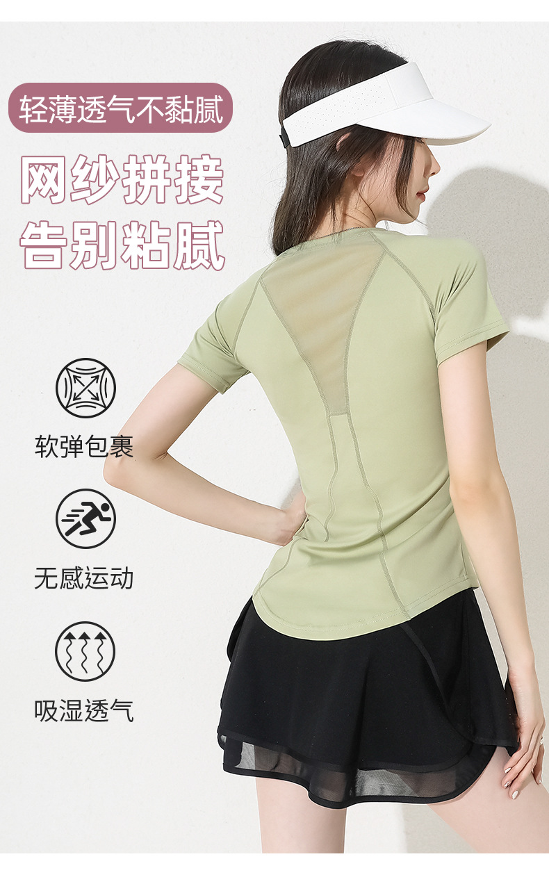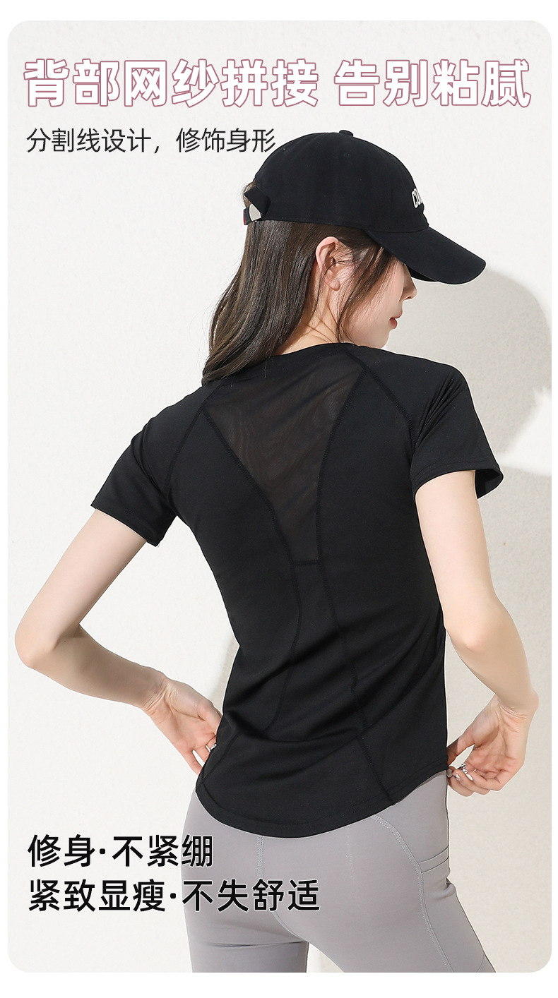 스포츠 요가 의류 최고 여성 반팔 티셔츠 슬리밍 필라테스 달리기 훈련 타이트한 반팔 피트니스 의류 메쉬
