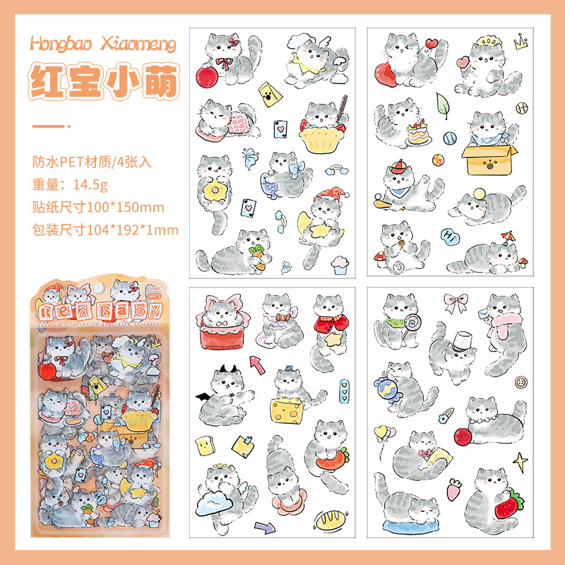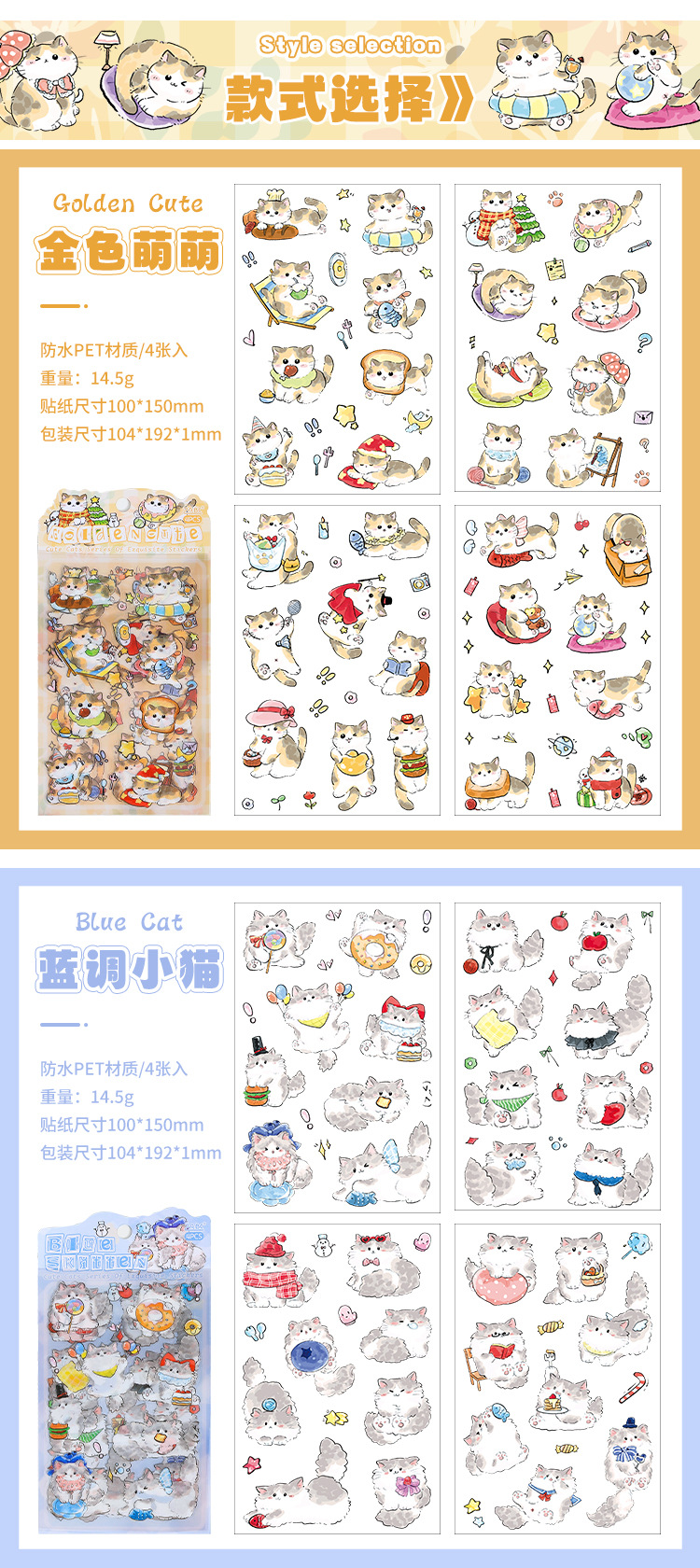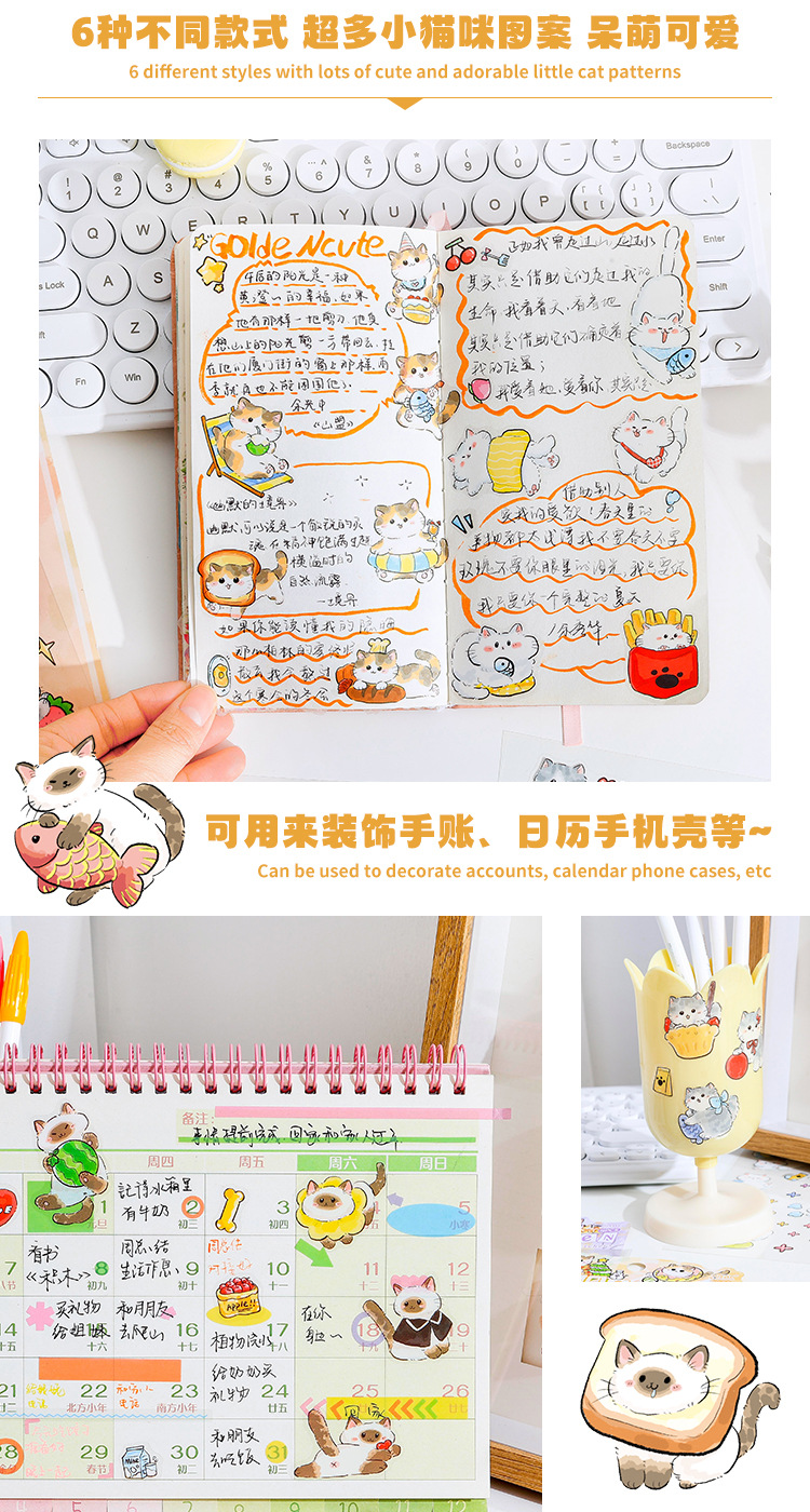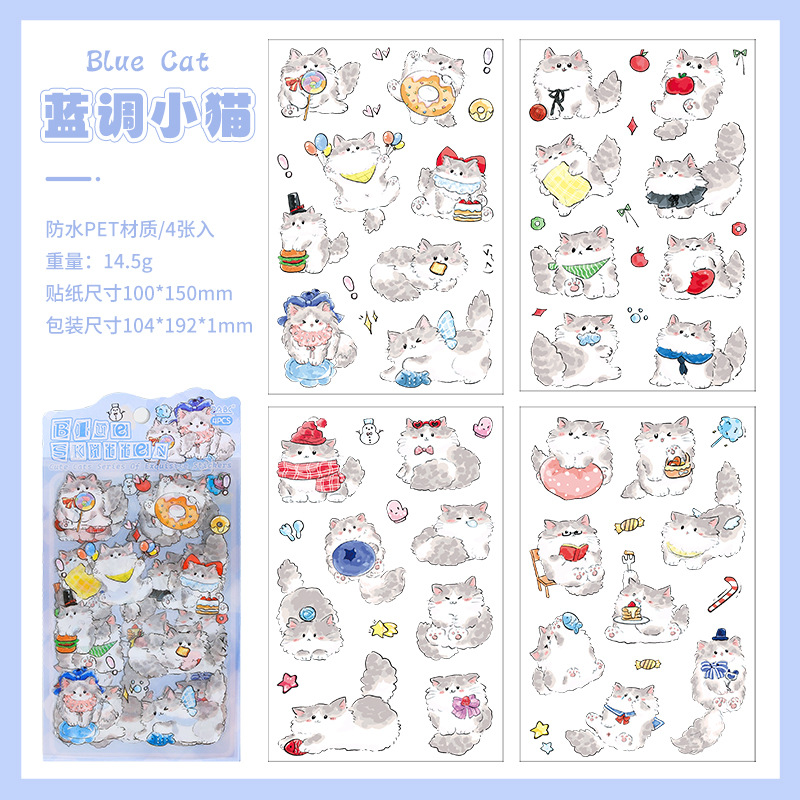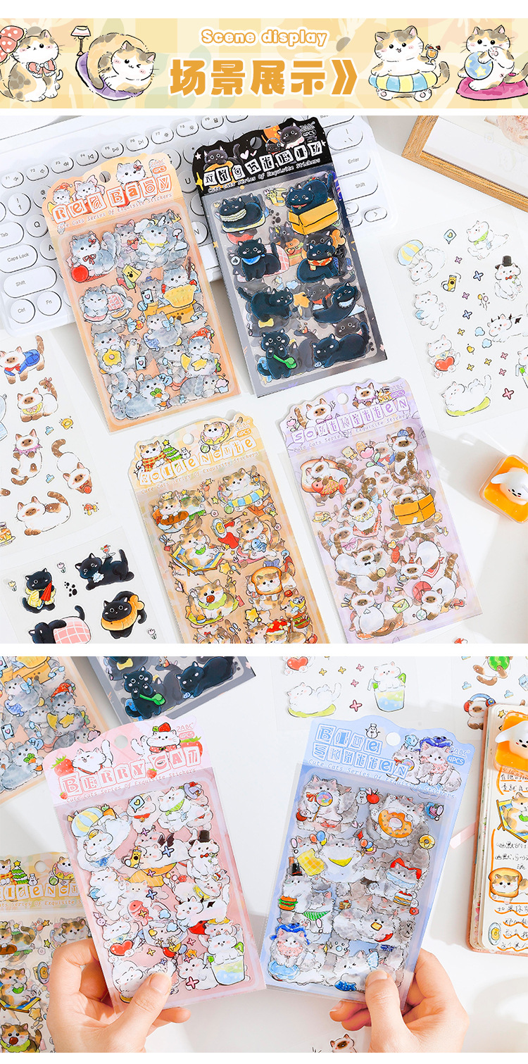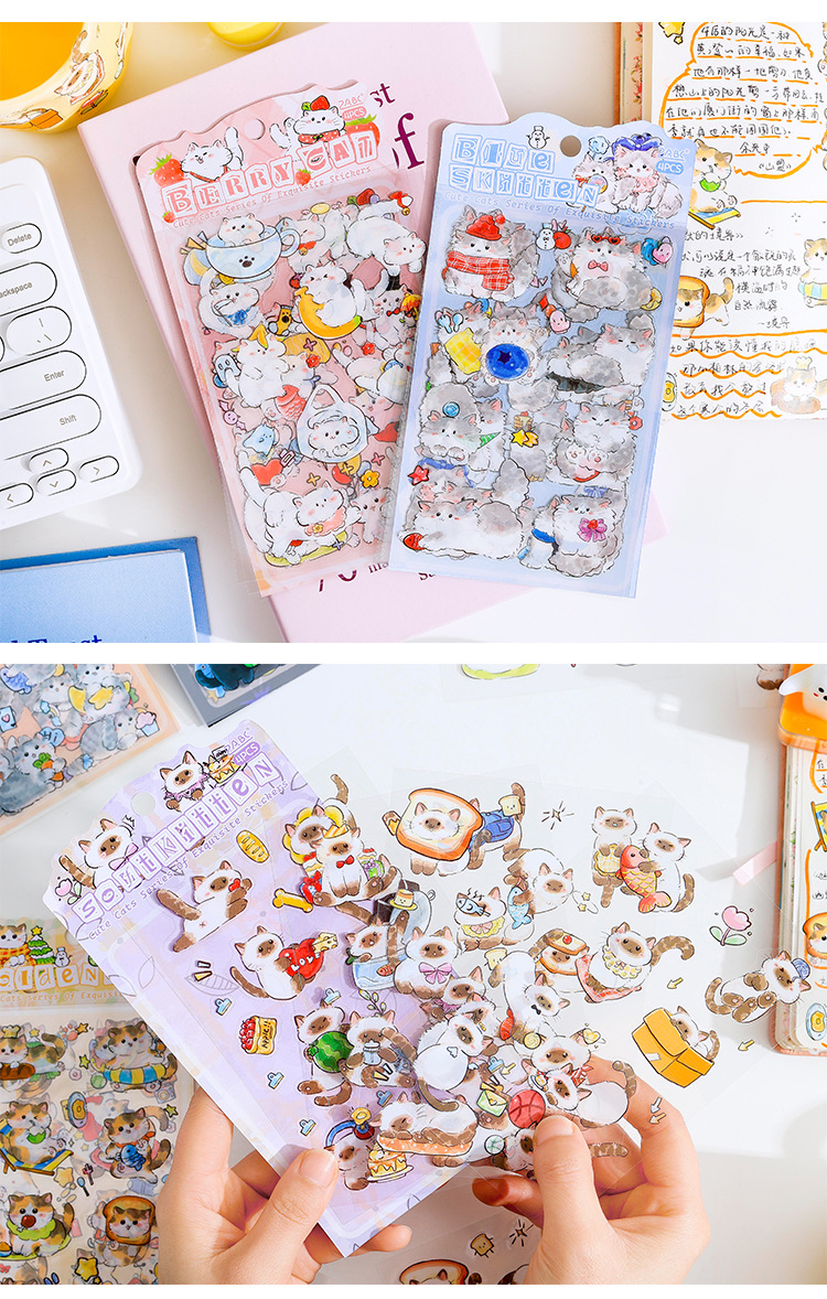 부드러운 귀여운 고양이 투명 방수 애완 동물 스티커 DIY 손 계정 일기 스티커 국경 귀여운 동물 고양이 스티커스토어 가기