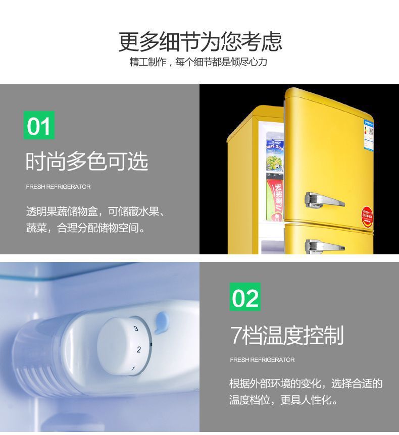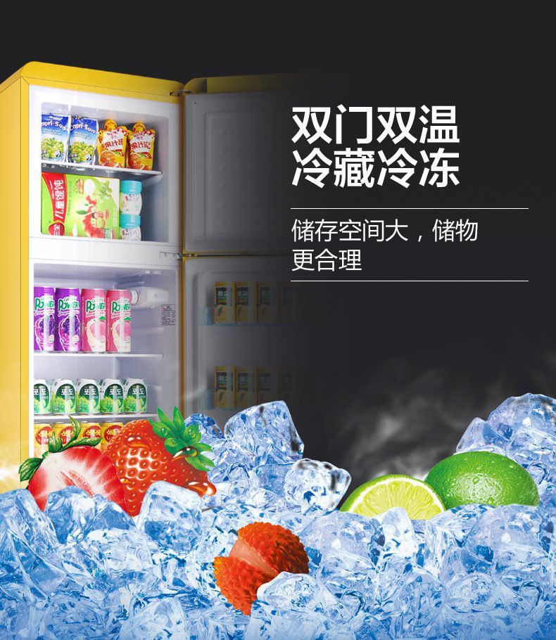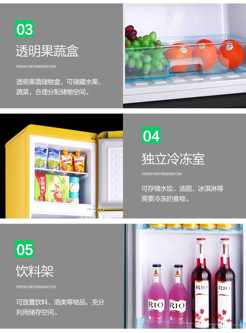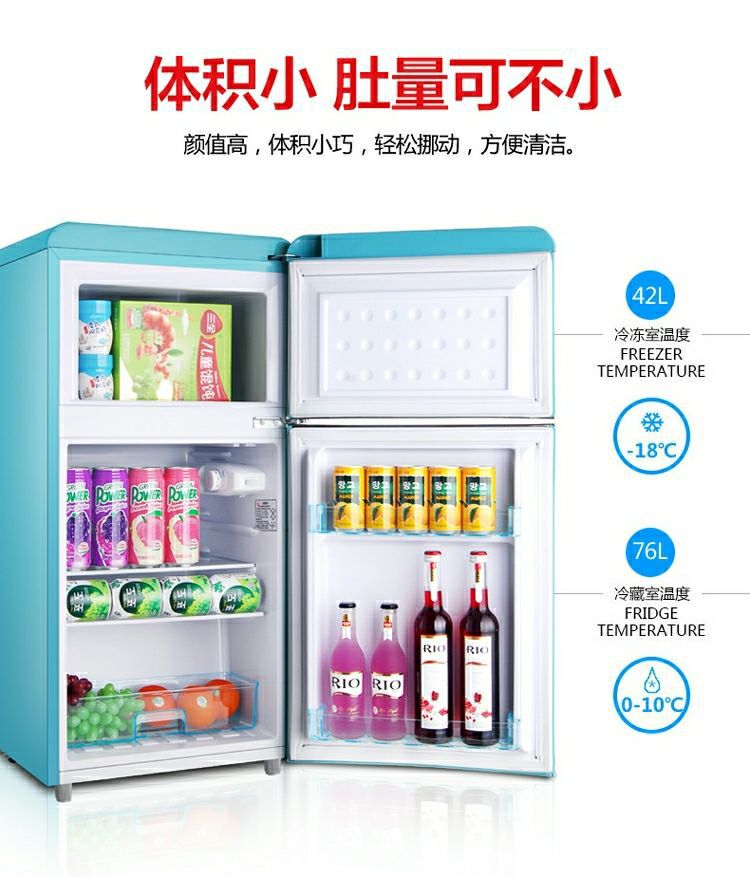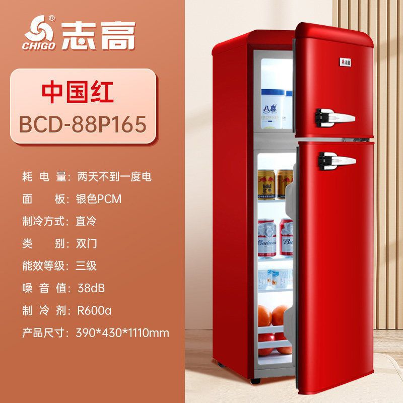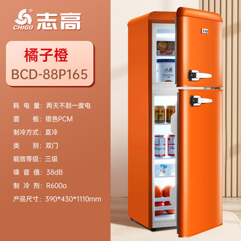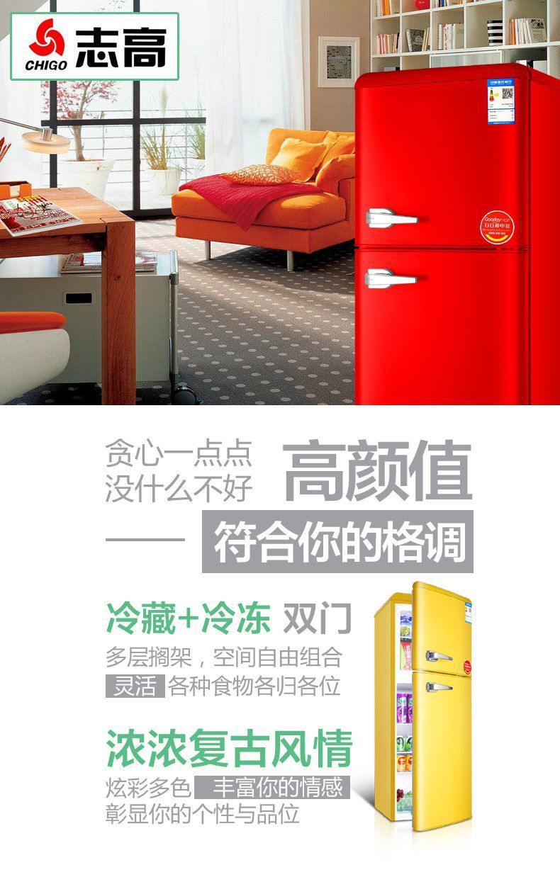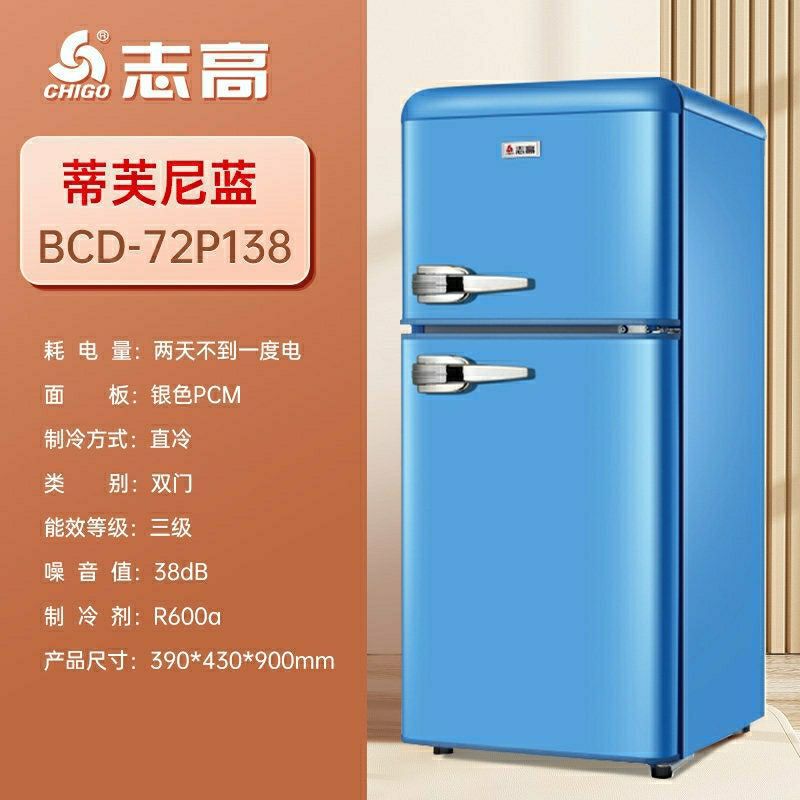 Chigo Retro 작은 냉장고 더블 도어 냉동 멀티 컬러 가정용 음소거 에너지 절약 미국 사무실스토어 가기