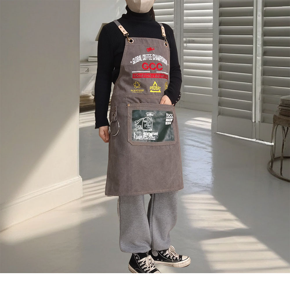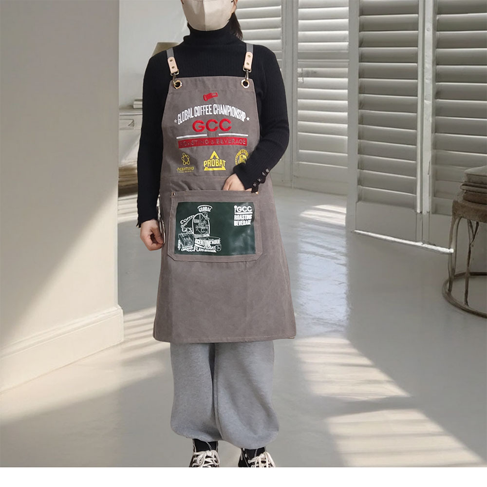 맞춤형 로고 다크 그레이 캔버스 우유 차 가게 앞치마 꽃집 미용사 플로리스트 레스토랑 바 카페
