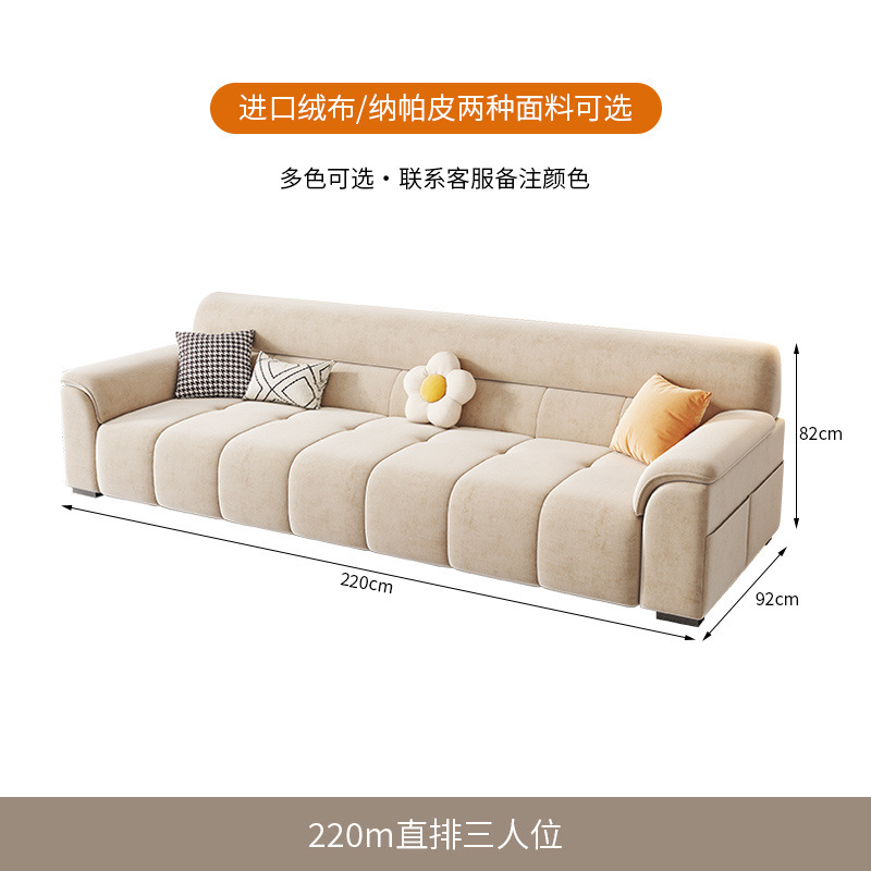 작은 아파트 거실 용 크림 플란넬 소파 2025 새로운 이탈리아 미니멀리스트 가죽 스트레이트 로우 3 과 4