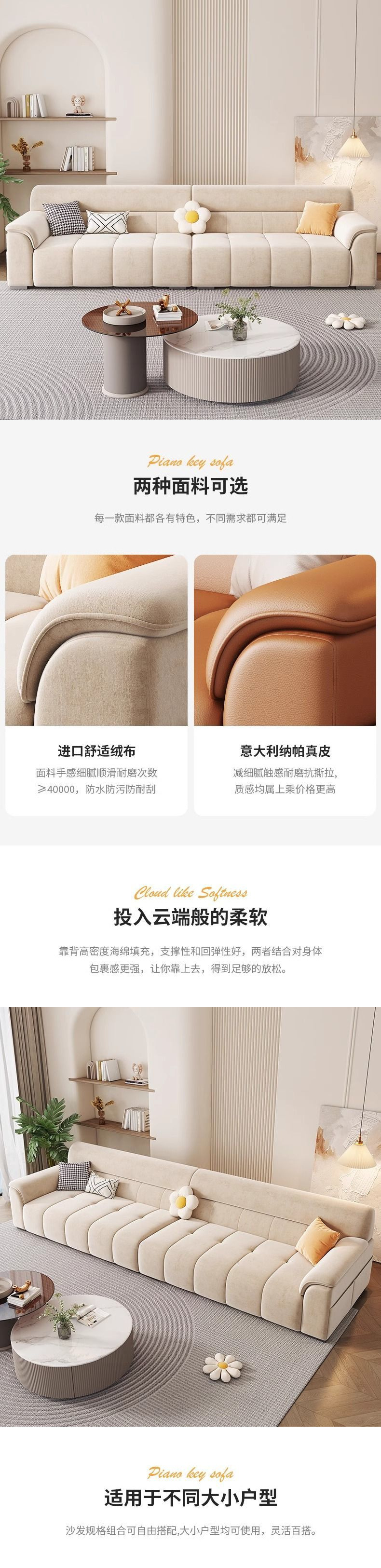 작은 아파트 거실 용 크림 플란넬 소파 2025 새로운 이탈리아 미니멀리스트 가죽 스트레이트 로우 3 과 4스토어 가기