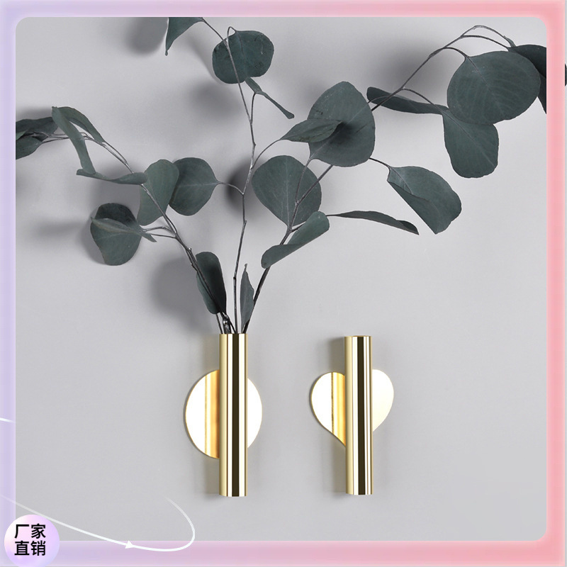 ▧ 창의적인 벽걸이 화병 북유럽 스타일 벽 꽃꽂이 화병 골드 무타공 거실 벽 장식
