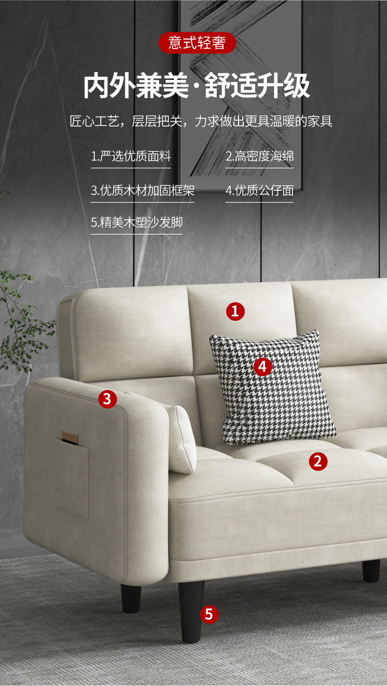 다기능 패브릭 소파 베드 이중 목적 접이식 싱글 침실 거실 게으른 소파 작은 아파트 임대 집 국경 간스토어 가기