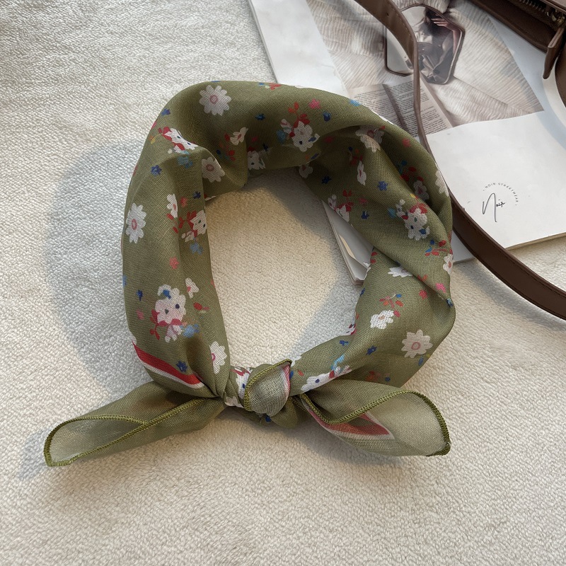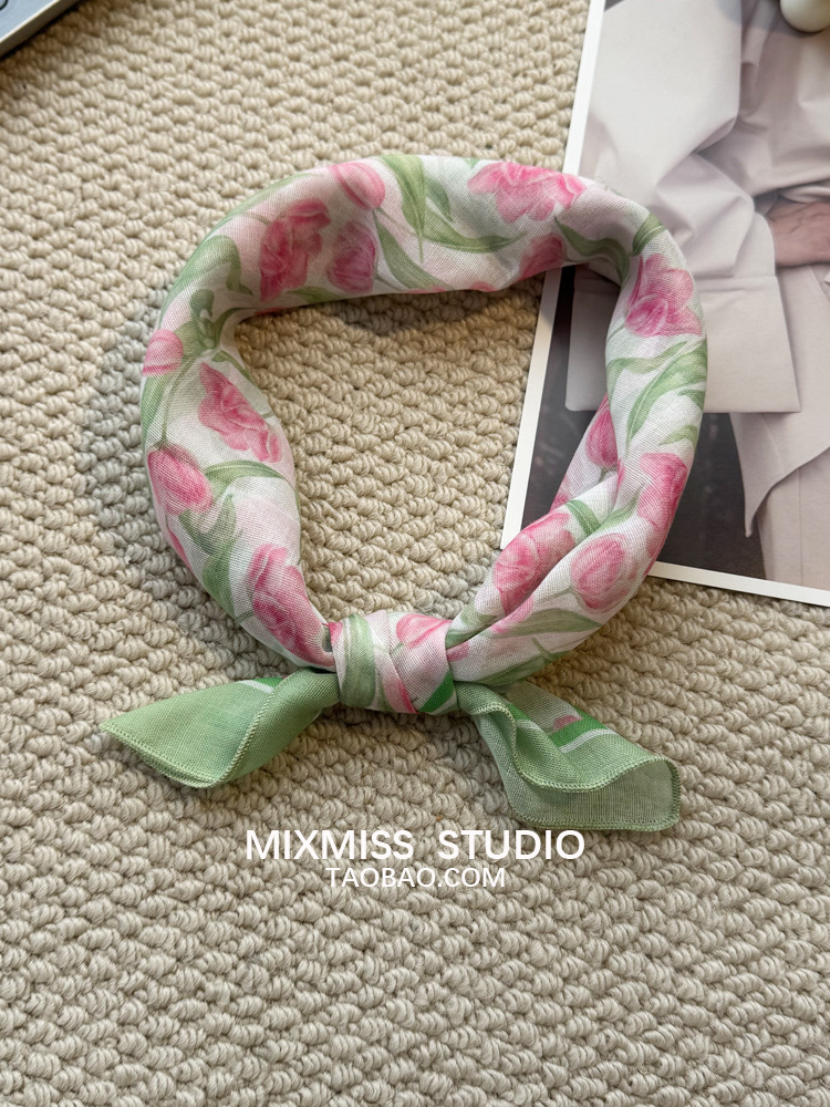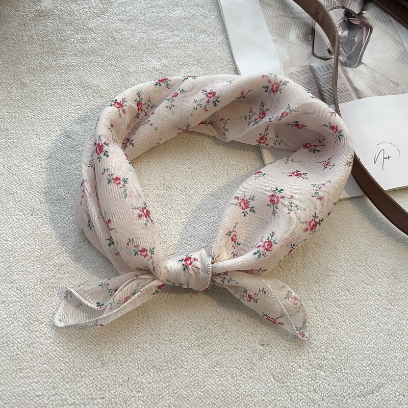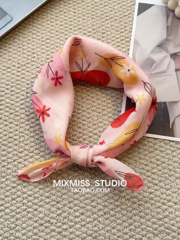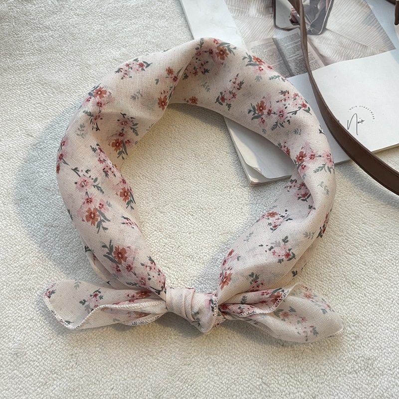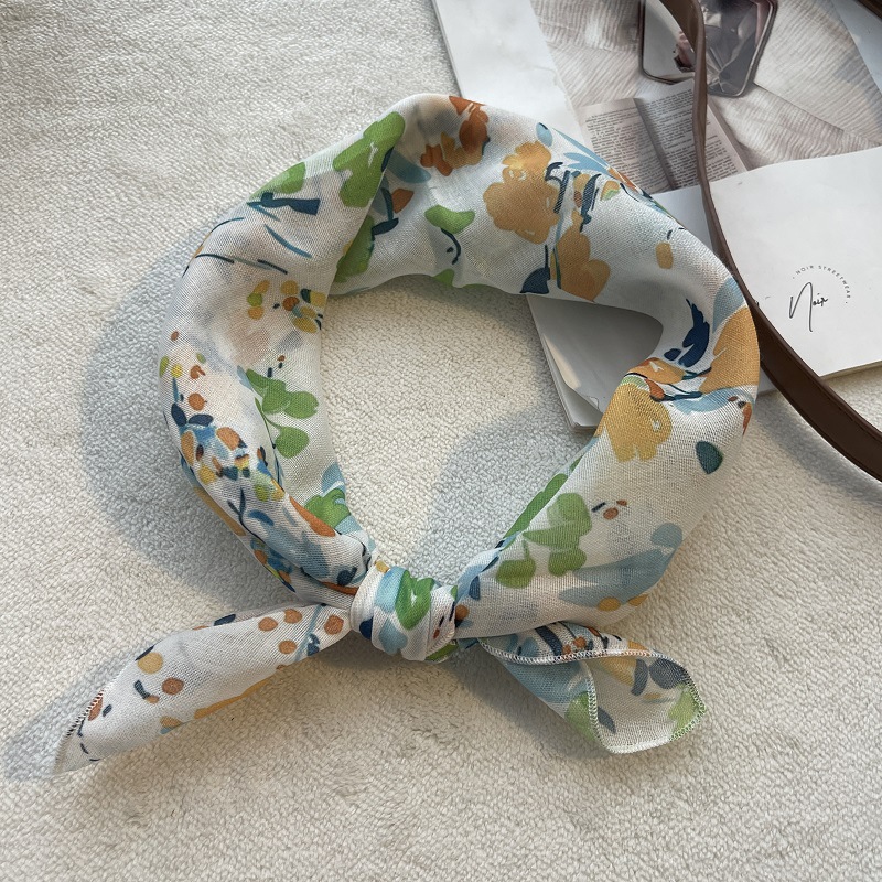 여름 목가적 인 스타일 작은 꽃 면화와 리넨 스퀘어 스카프 예술적 복고풍 작은 스카프 여성 여행 올 매치 장식 헤드 스카프 헤어 벨트