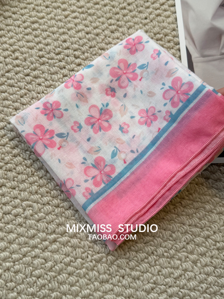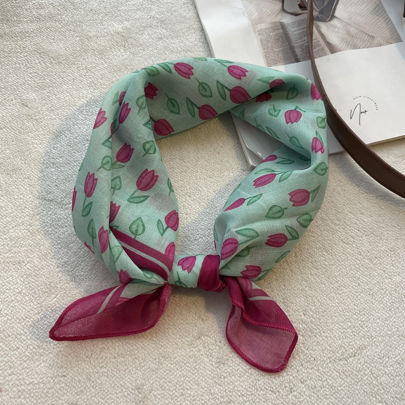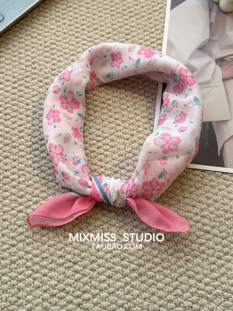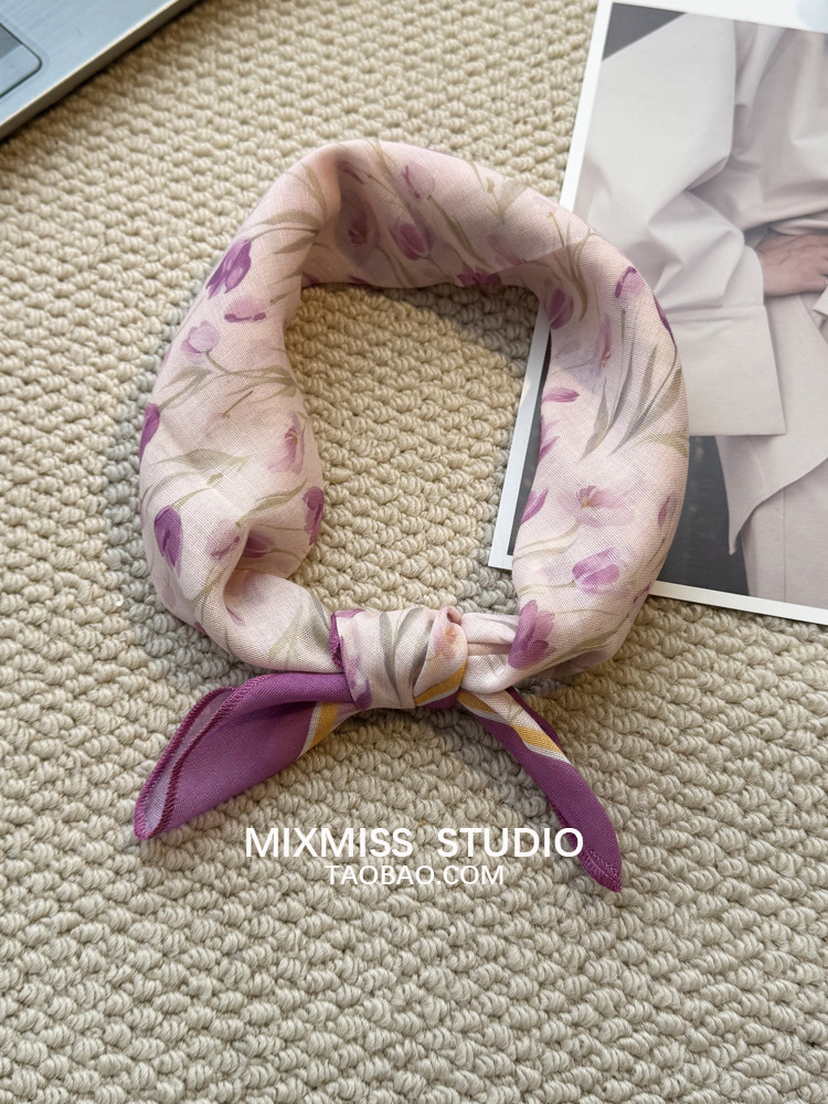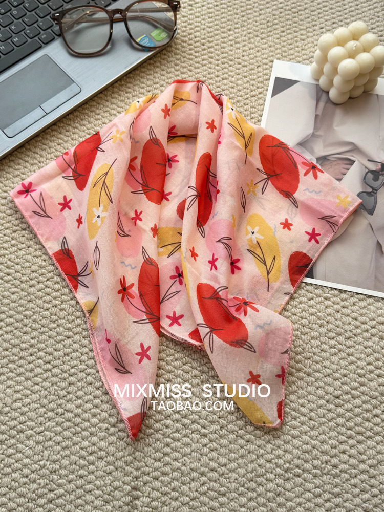 여름 목가적 인 스타일 작은 꽃 면화와 리넨 스퀘어 스카프 예술적 복고풍 작은 스카프 여성 여행 올 매치 장식 헤드 스카프 헤어 벨트