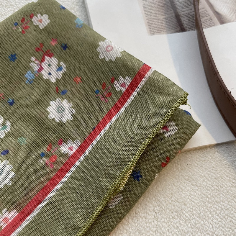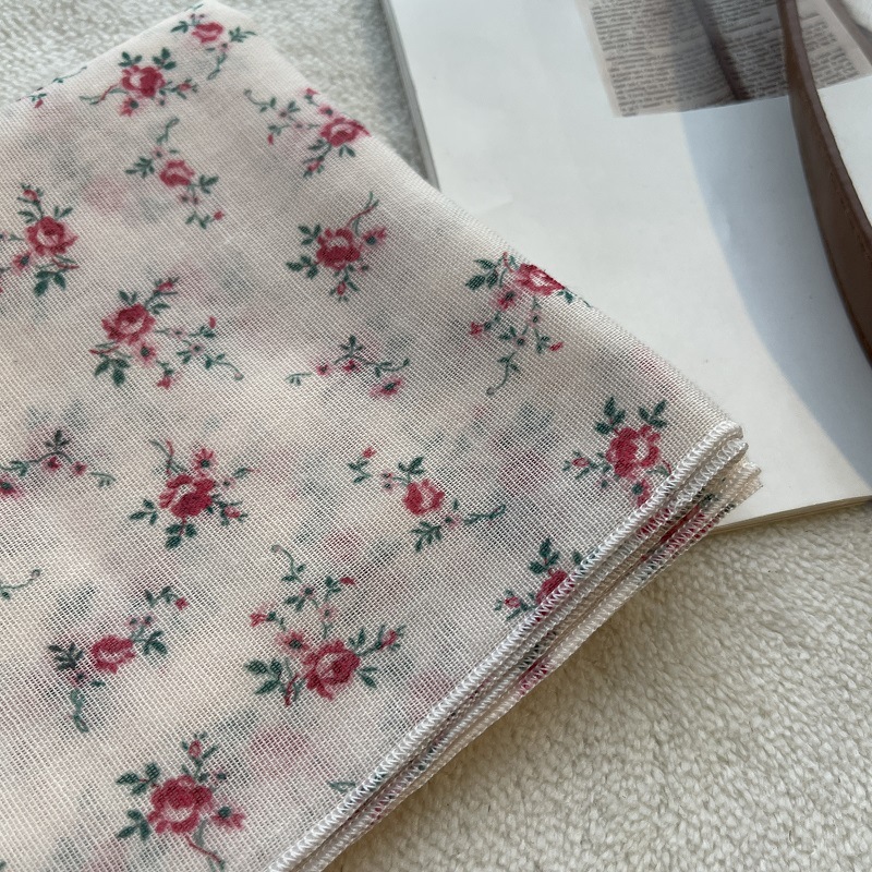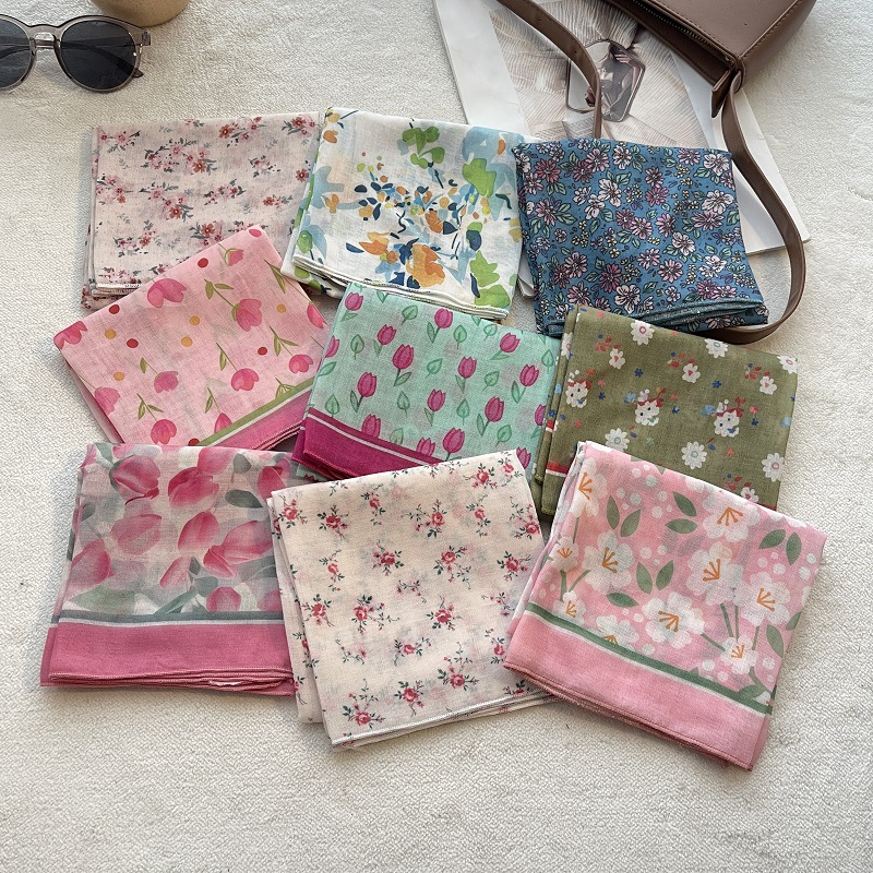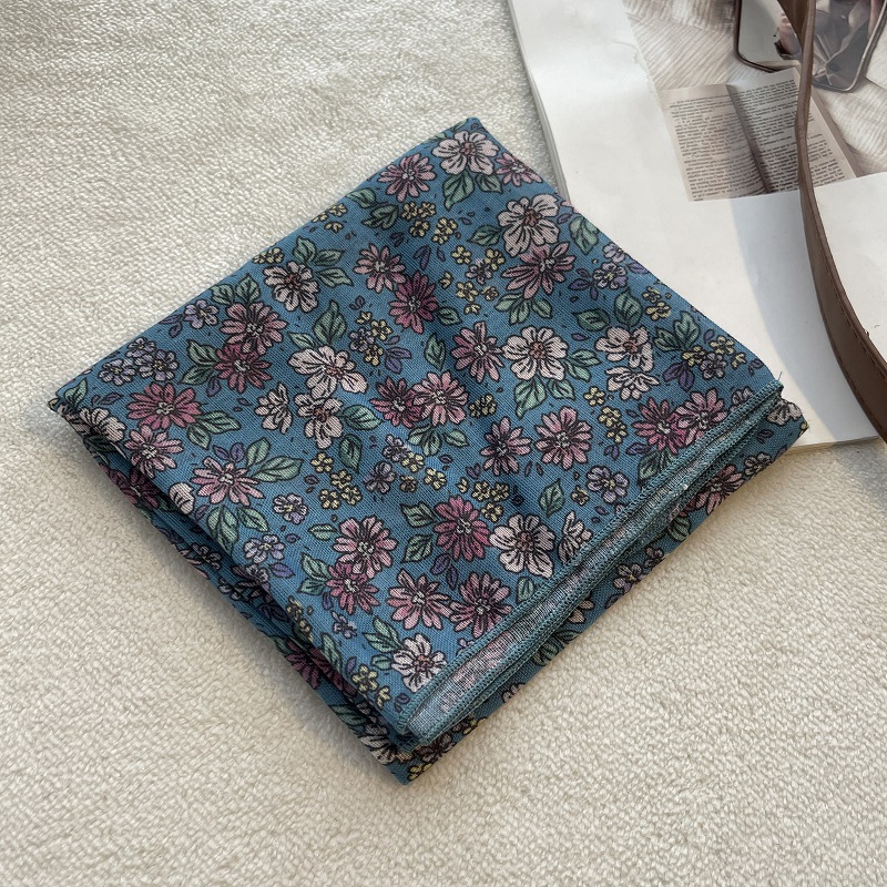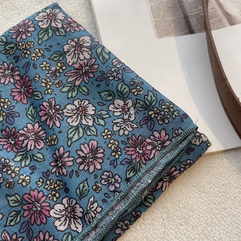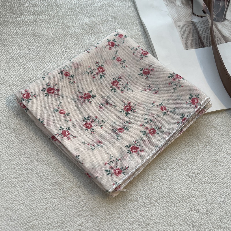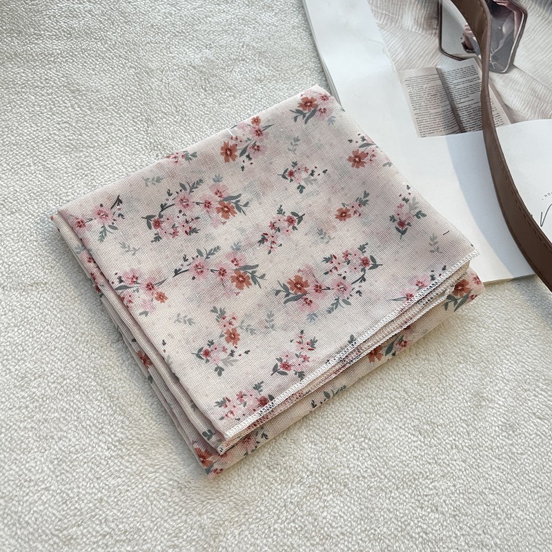 여름 목가적 인 스타일 작은 꽃 면화와 리넨 스퀘어 스카프 예술적 복고풍 작은 스카프 여성 여행 올 매치 장식 헤드 스카프 헤어 벨트스토어 가기