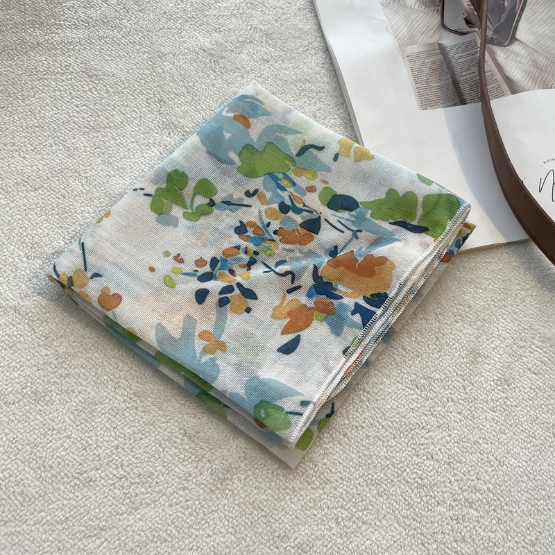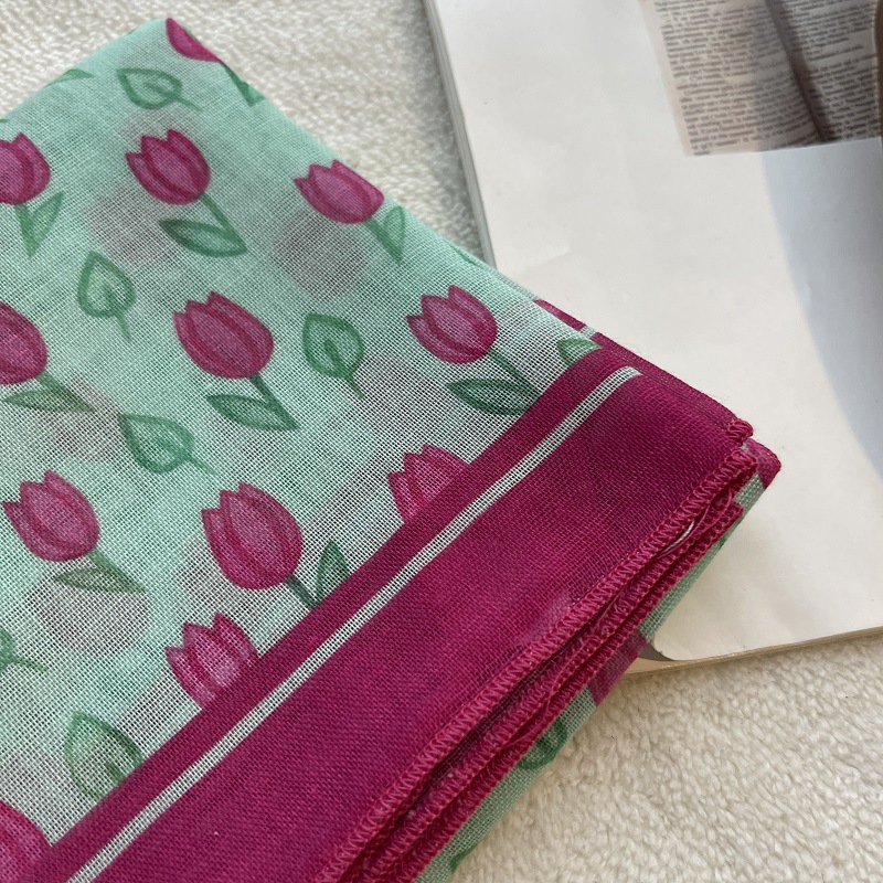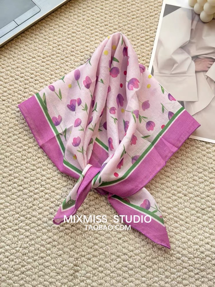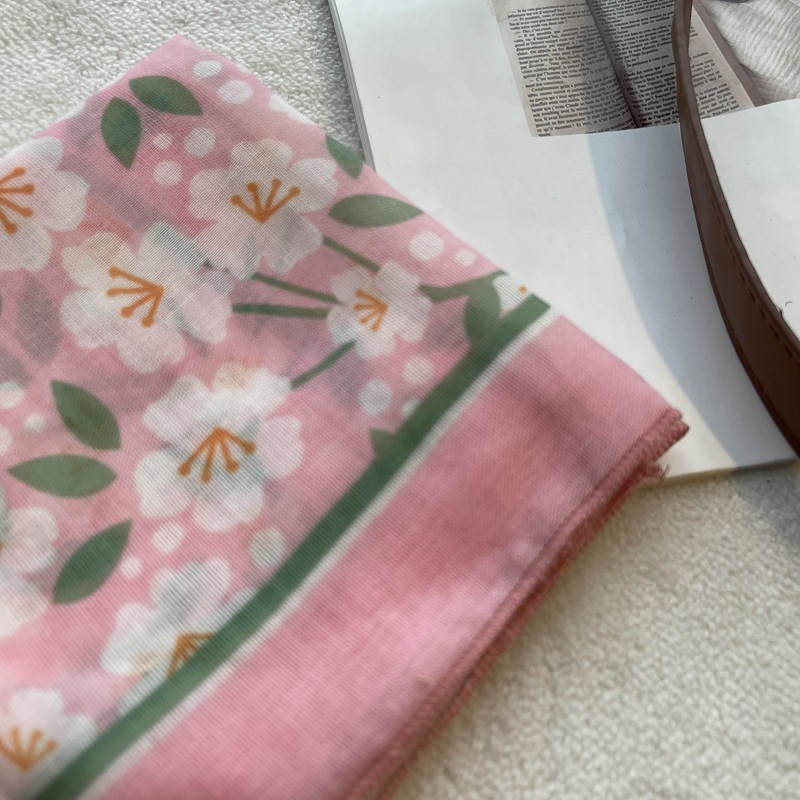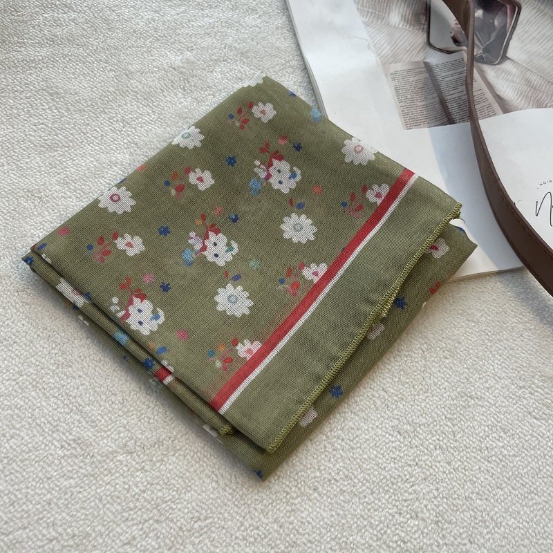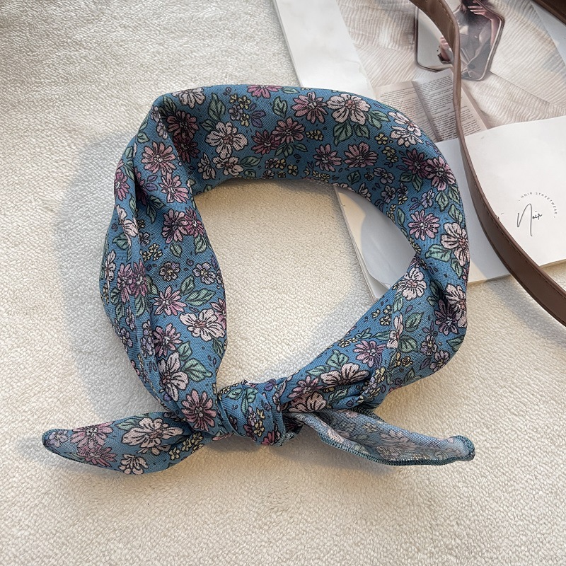 여름 목가적 인 스타일 작은 꽃 면화와 리넨 스퀘어 스카프 예술적 복고풍 작은 스카프 여성 여행 올 매치 장식 헤드 스카프 헤어 벨트스토어 가기