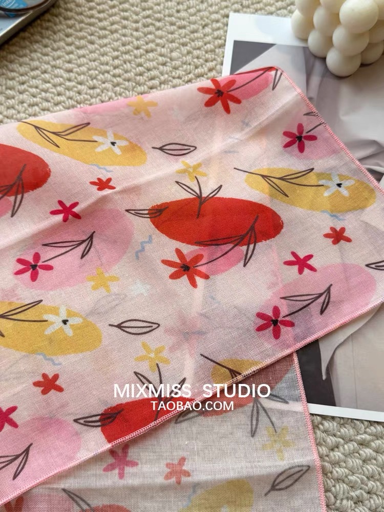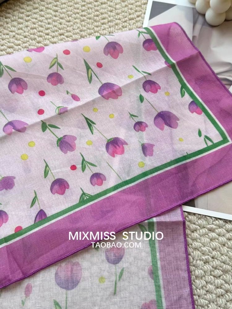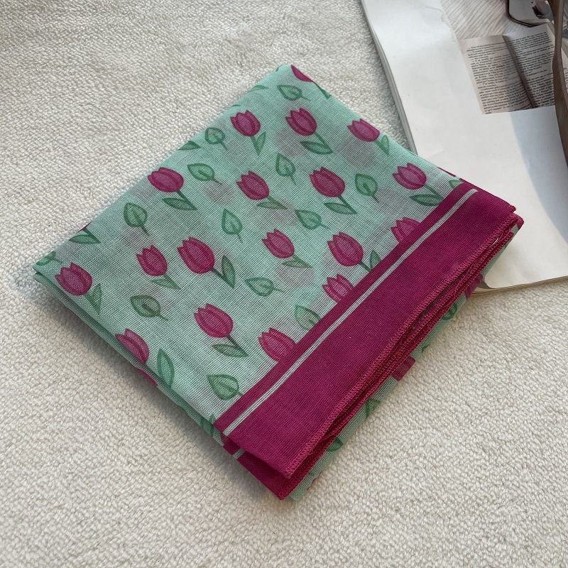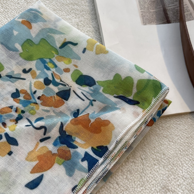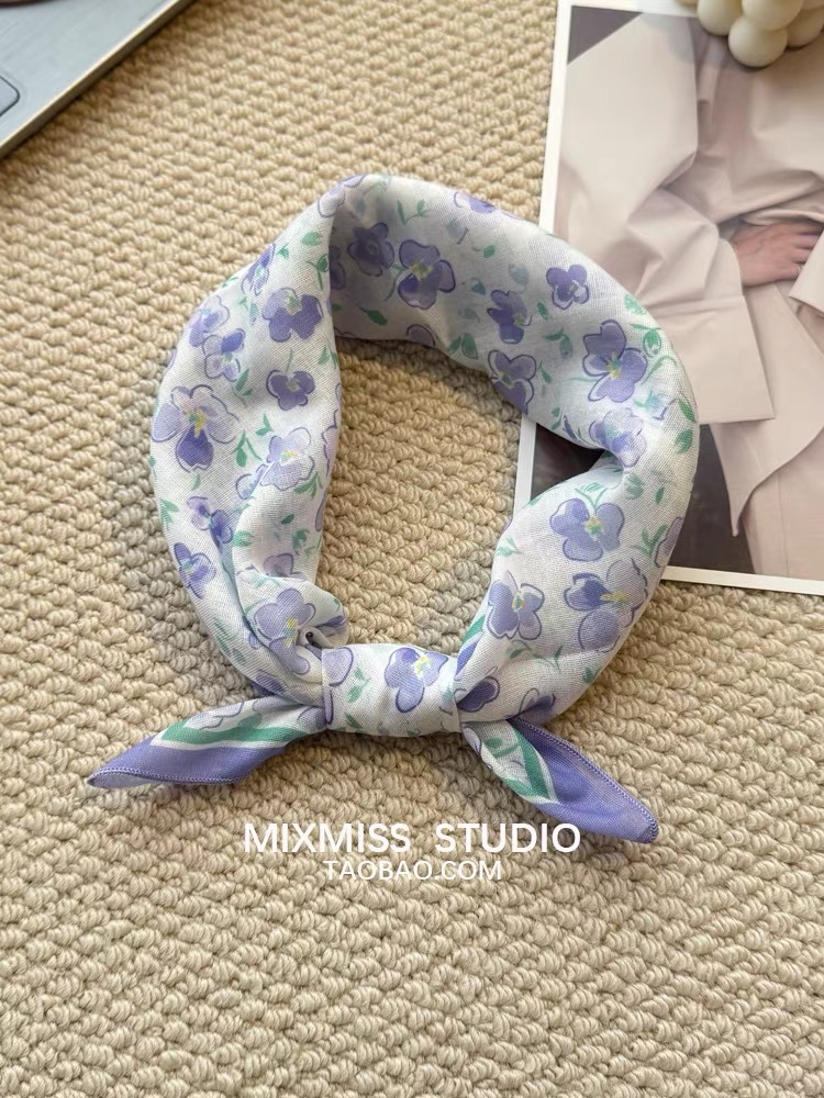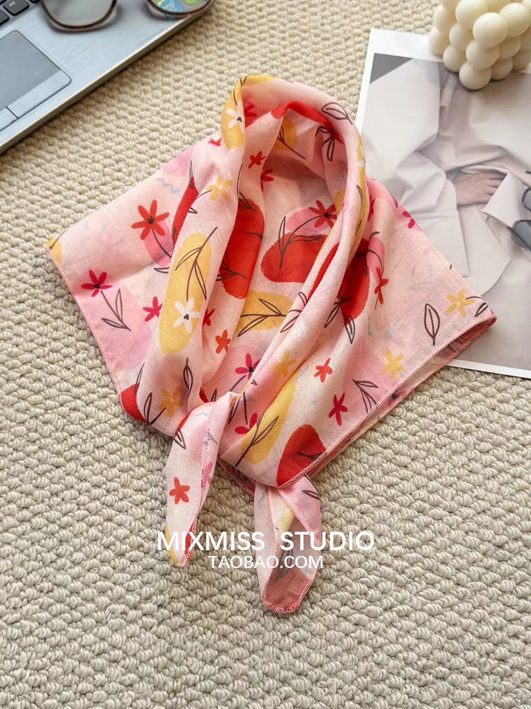 여름 목가적 인 스타일 작은 꽃 면화와 리넨 스퀘어 스카프 예술적 복고풍 작은 스카프 여성 여행 올 매치 장식 헤드 스카프 헤어 벨트스토어 가기