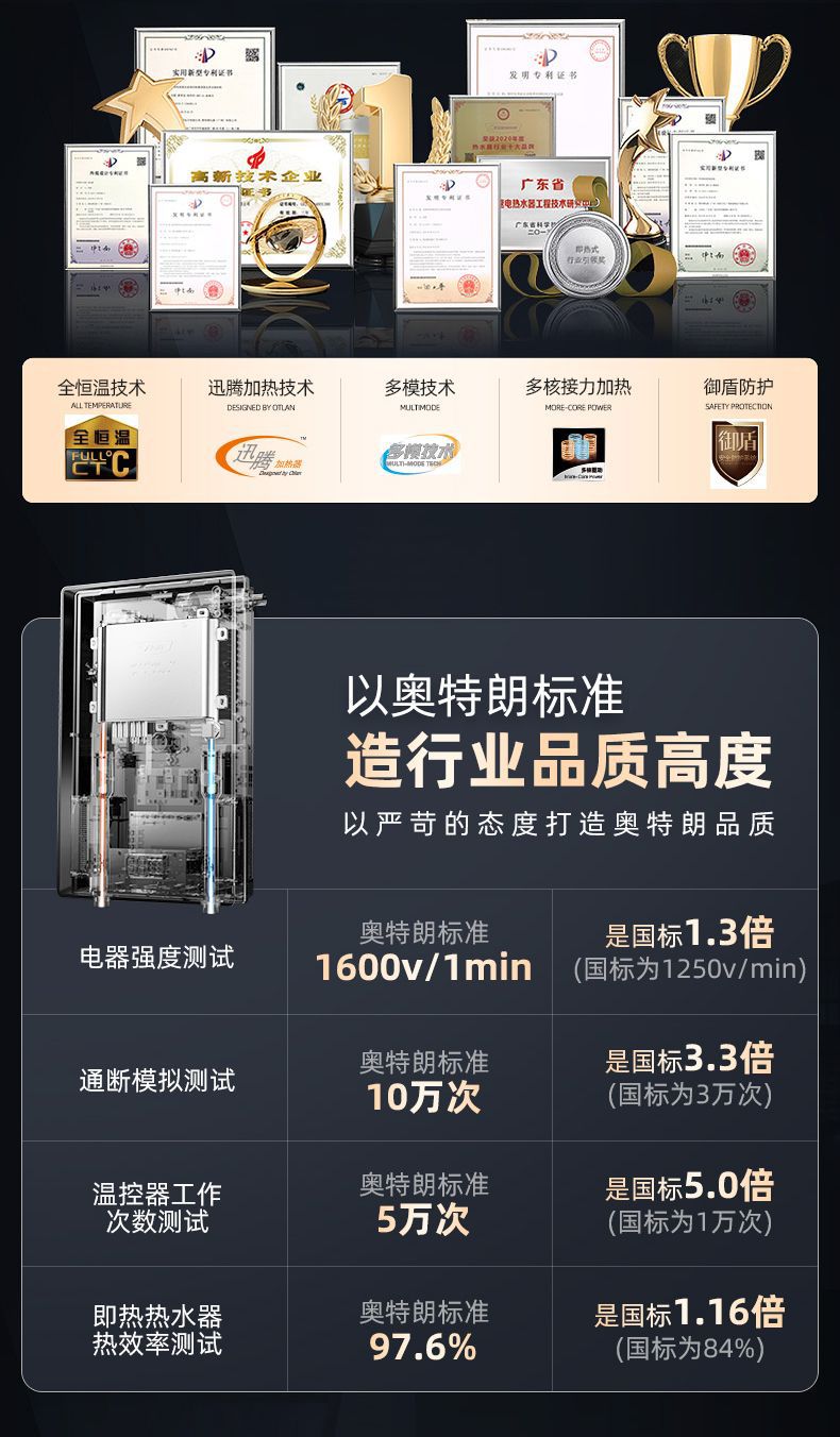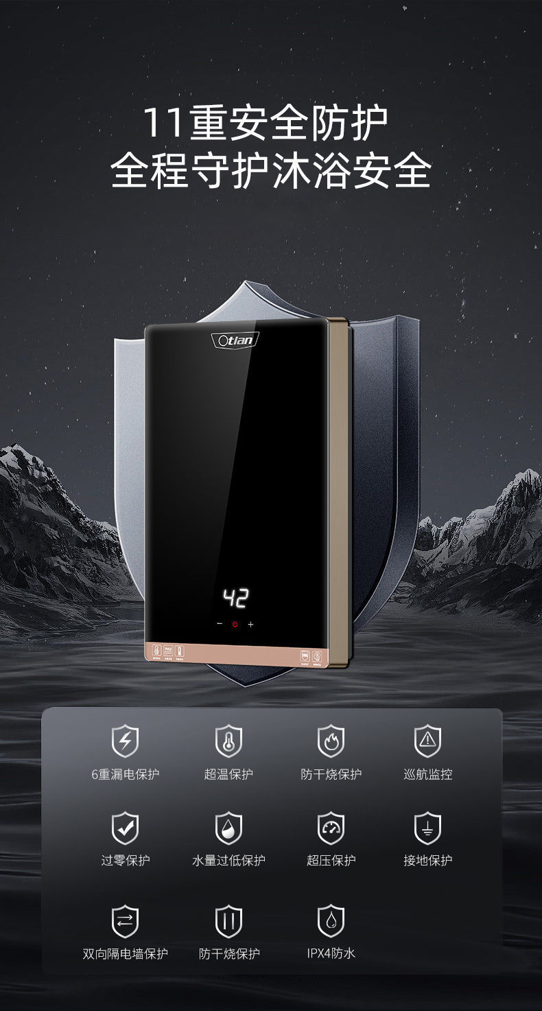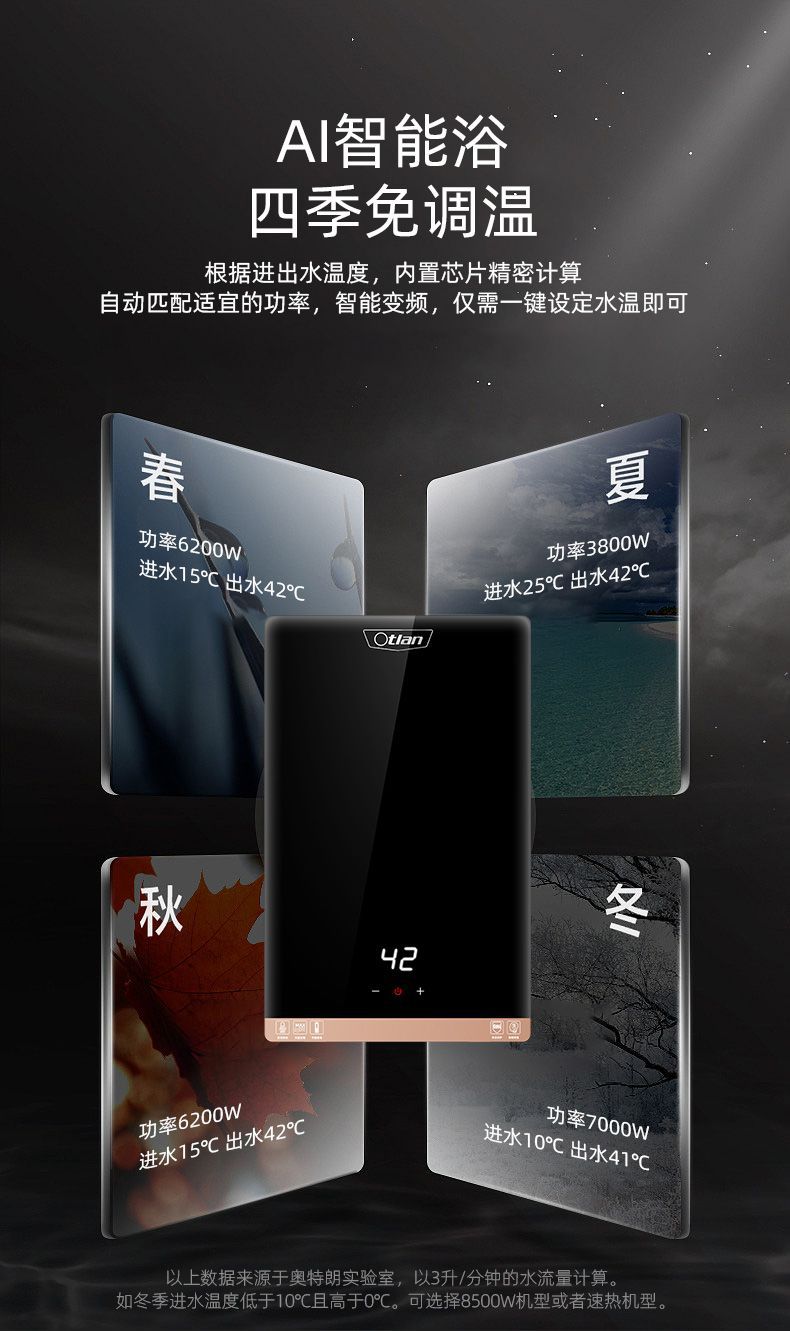 Otran 가변 주파수 일정한 온도 순간 전기 온수기 가정용 작은 빠른 화장실 샤워 욕조 F15H