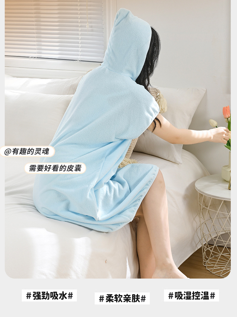 가을과 겨울 목욕 원피스 후드 목욕 착용 여성 성인 두꺼운 목욕 옷 물 흡수성 빠른 건조 부드러운 홈 잠옷