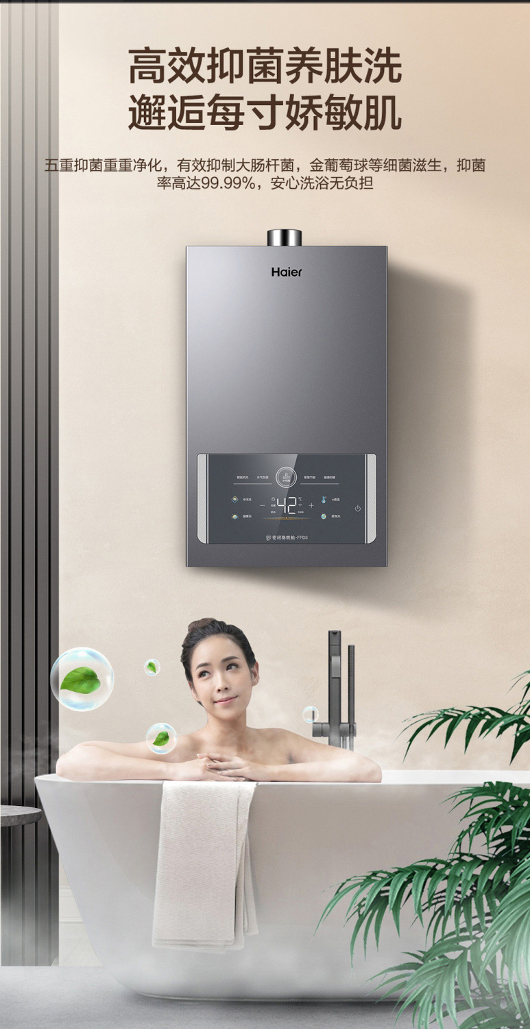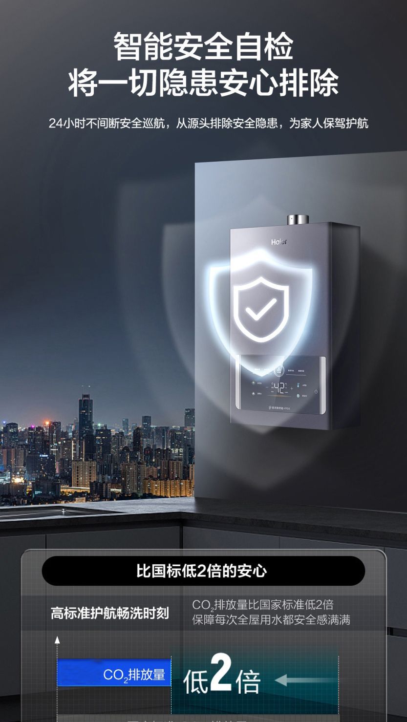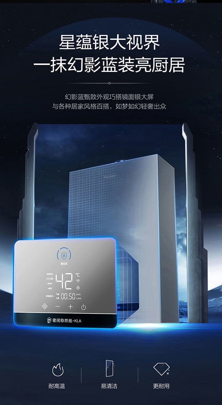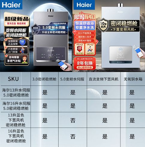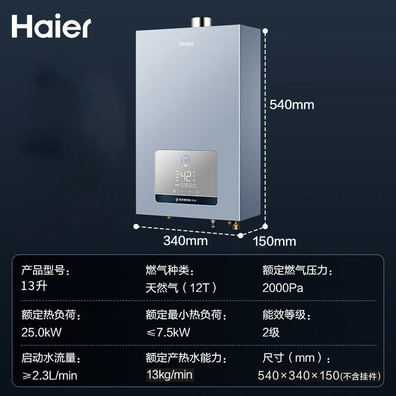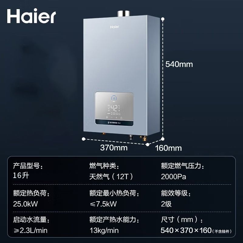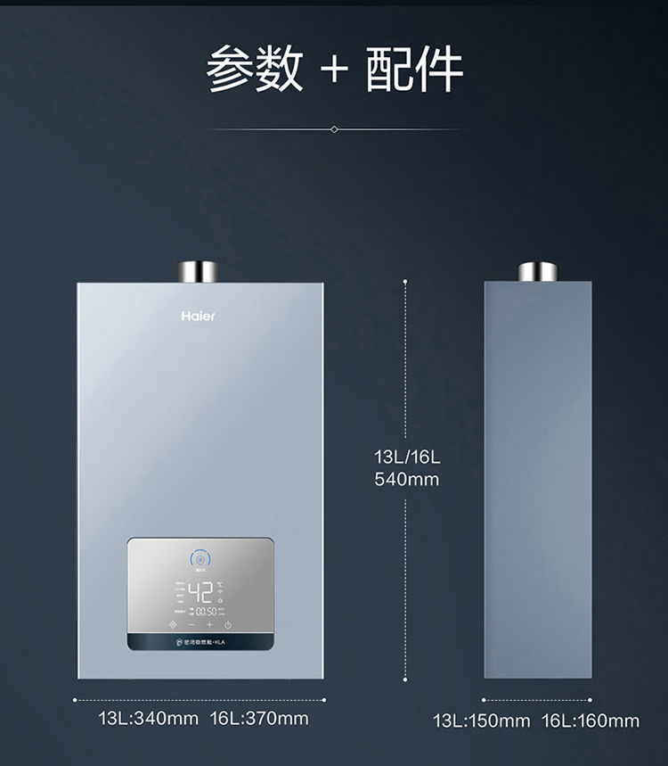 하이얼 가스 온수기 13/16 L 워터 서보 폐쇄 안정 연소 창고 낮은 가변 주파수 팬 가스 온수기