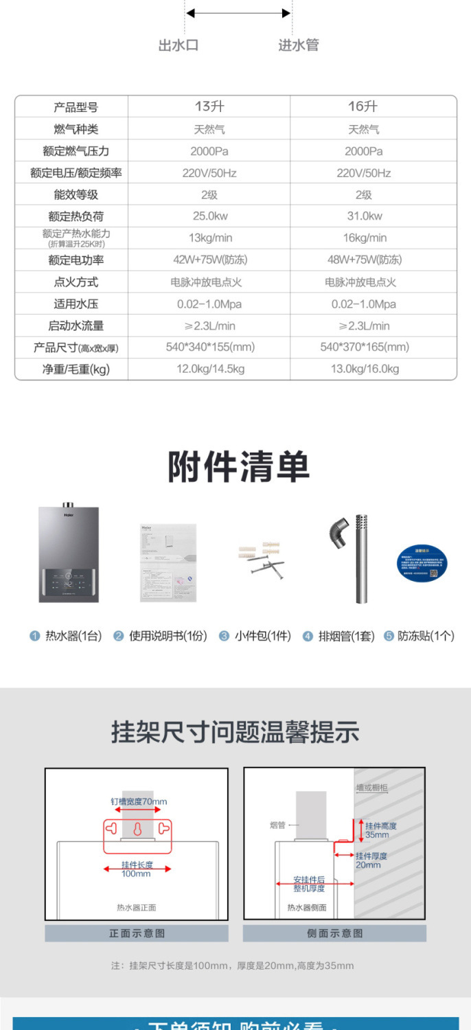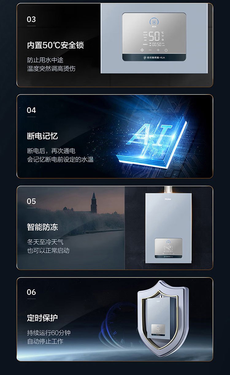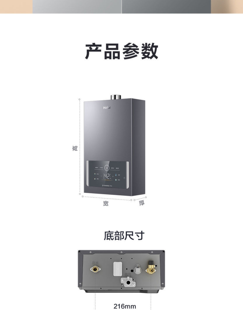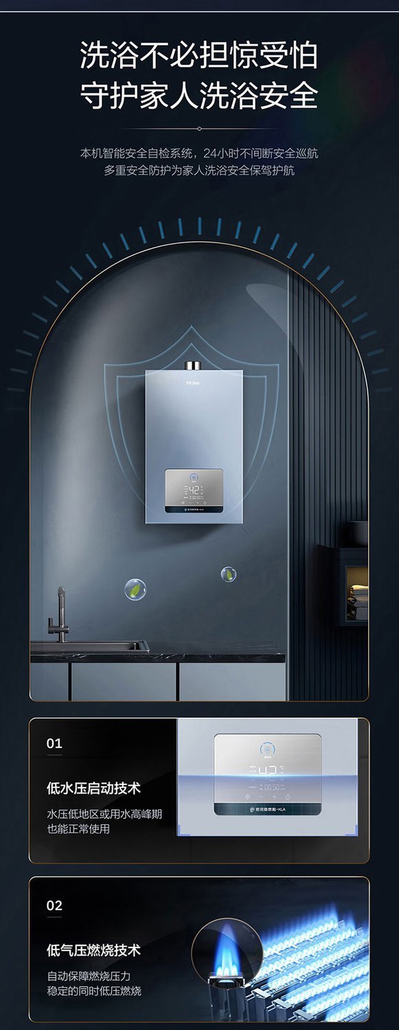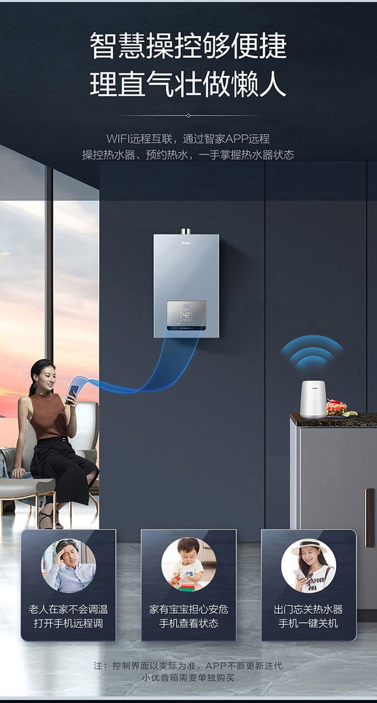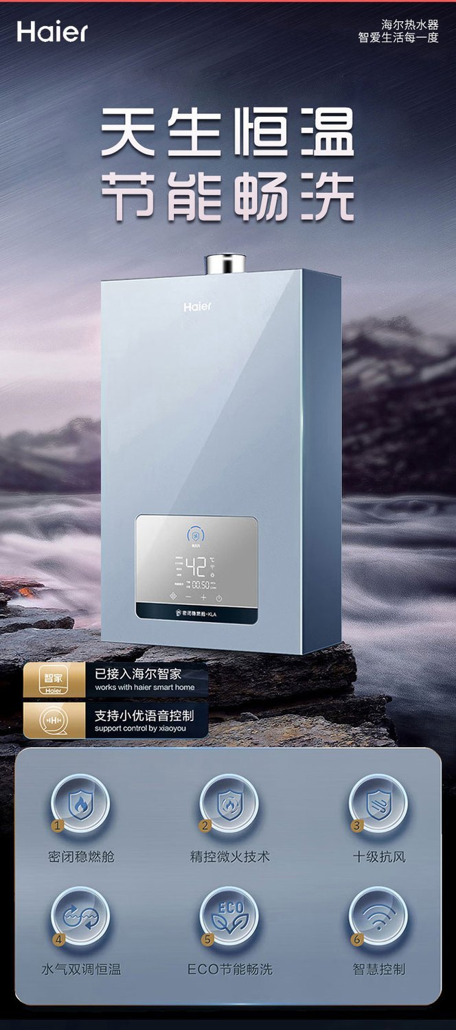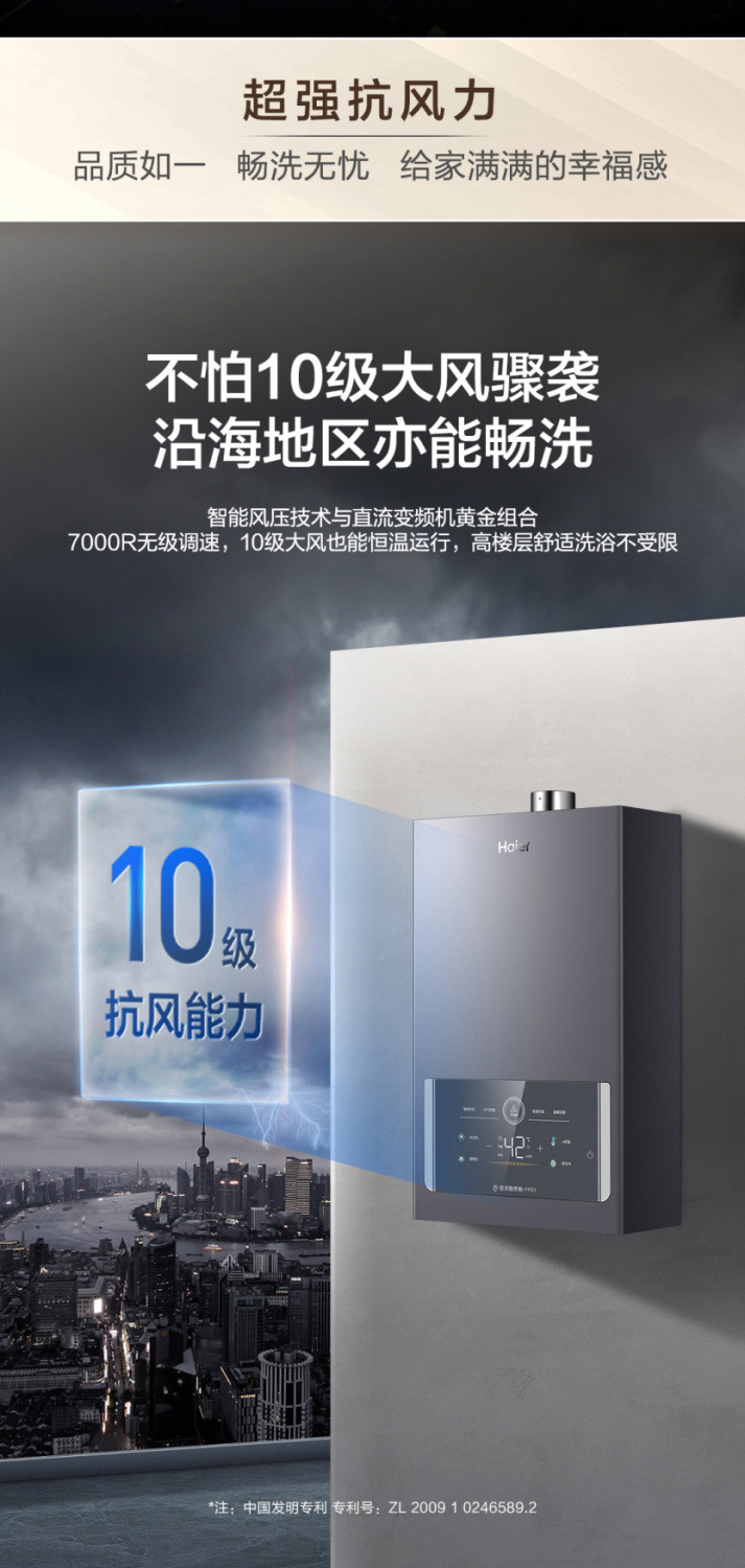 하이얼 가스 온수기 13/16 L 워터 서보 폐쇄 안정 연소 창고 낮은 가변 주파수 팬 가스 온수기