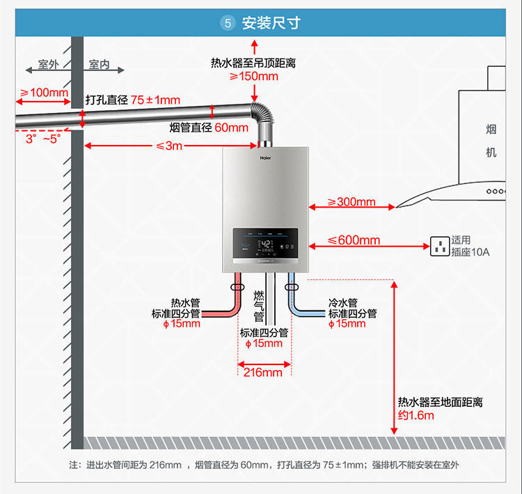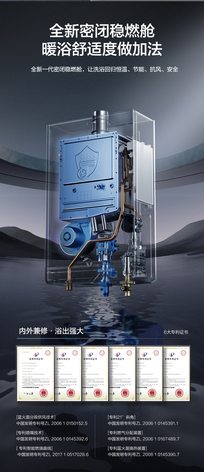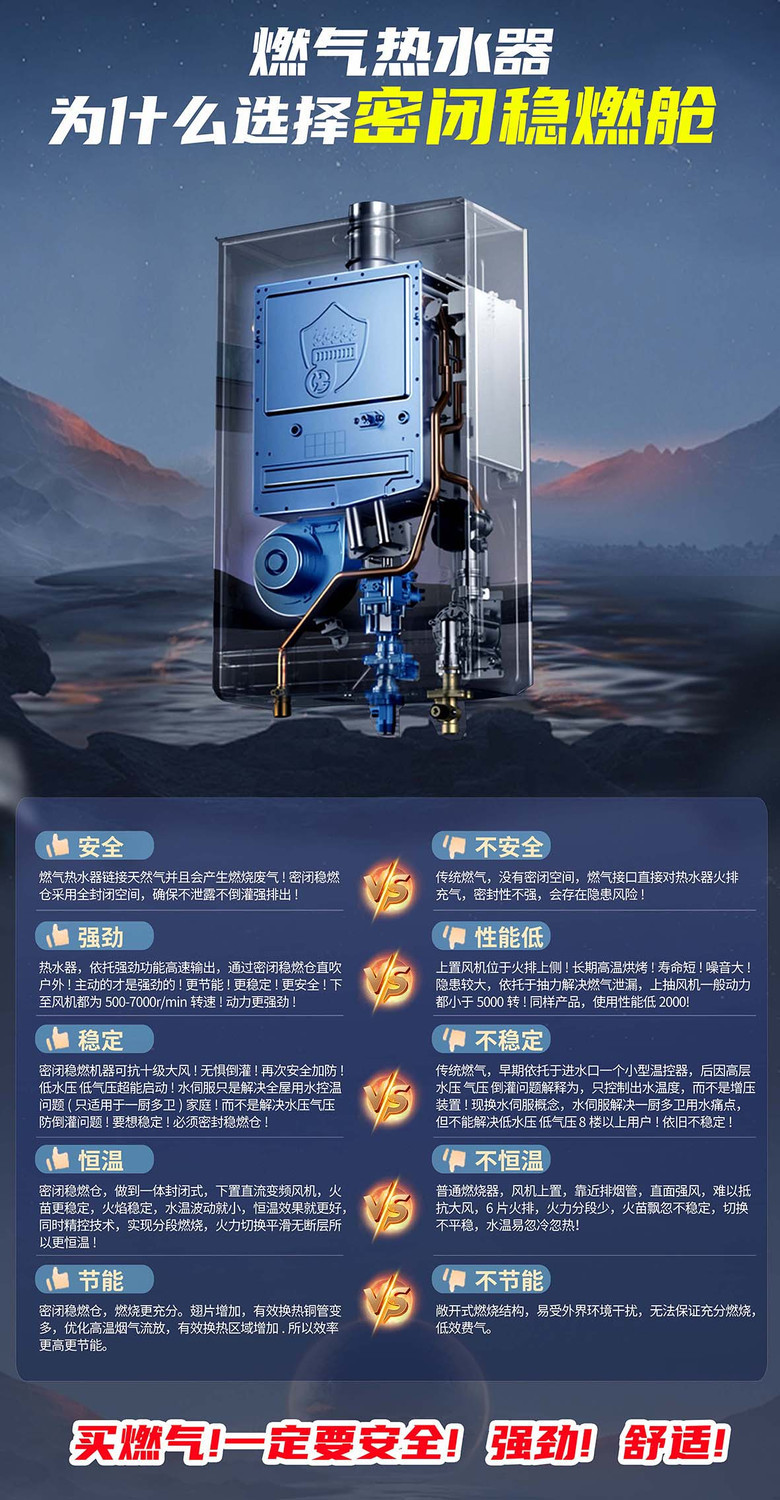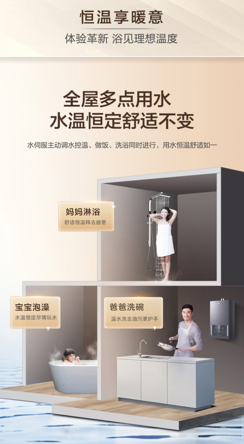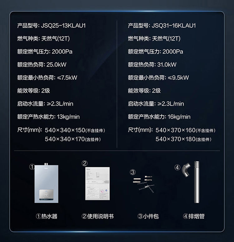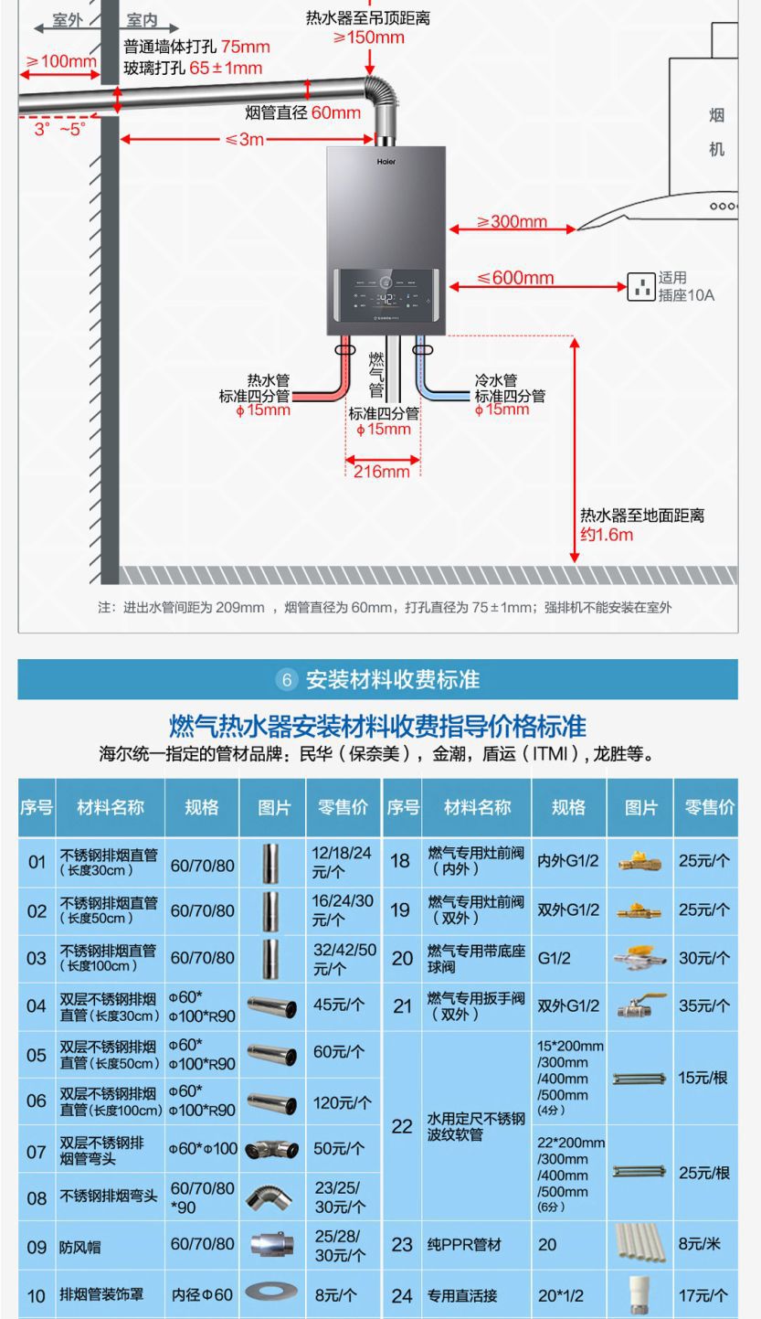 하이얼 가스 온수기 13/16 L 워터 서보 폐쇄 안정 연소 창고 낮은 가변 주파수 팬 가스 온수기