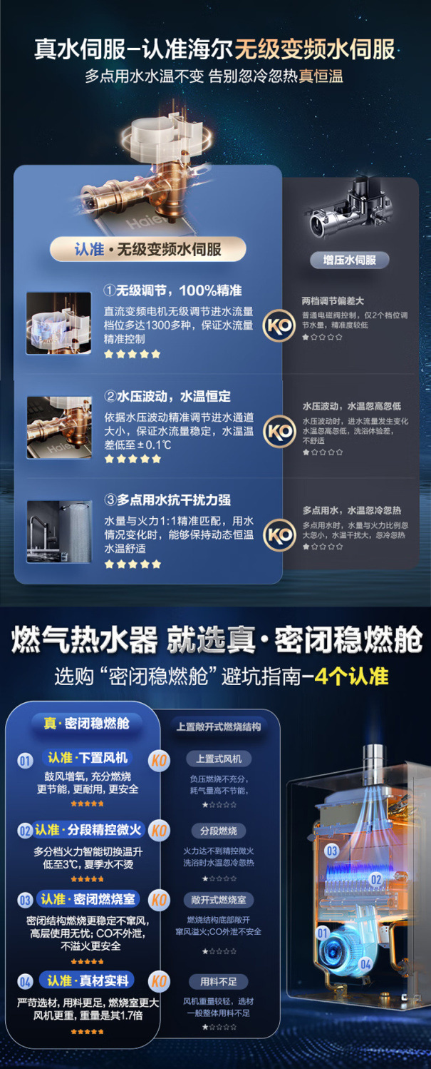 하이얼 가스 온수기 13/16 L 워터 서보 폐쇄 안정 연소 창고 낮은 가변 주파수 팬 가스 온수기스토어 가기