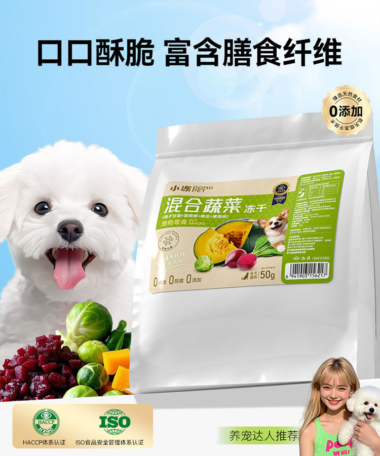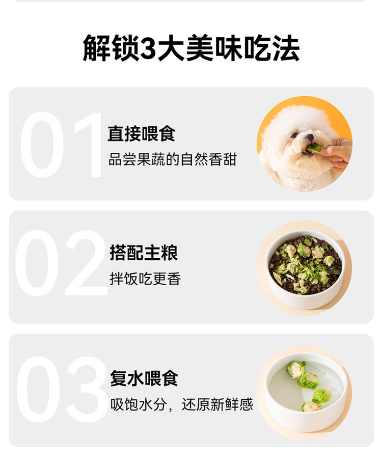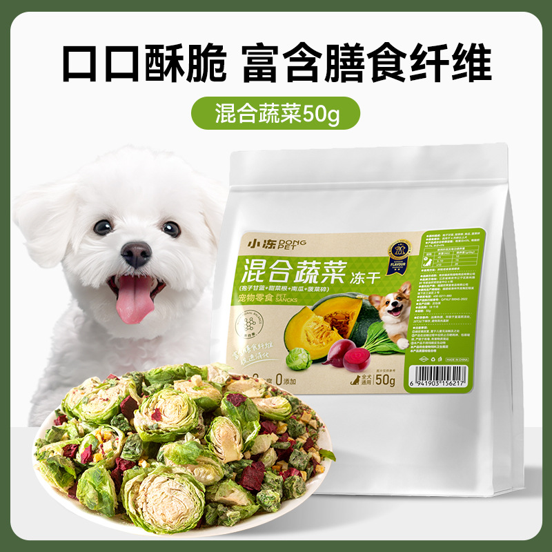 개 간식 동결 건조 과일 및 야채 포자 양배추 과일 및 야채 크리스피 50g 혼합 개 사료 보상 훈련 애완 동물 식품스토어 가기