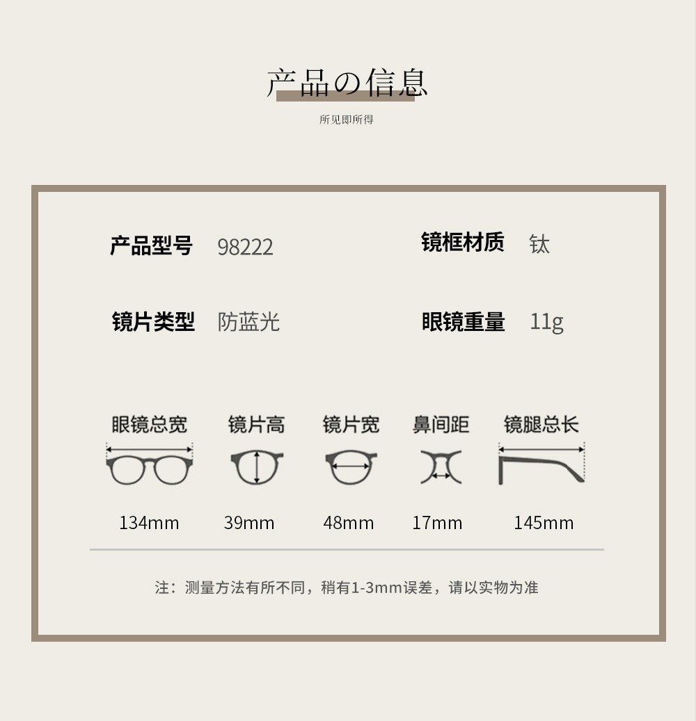 레트로 울트라 라이트 순수 티타늄 작은 프레임 높이 98222 전체 티타늄 안티 블루 라이트 근시 안경 단양 공장 프레임